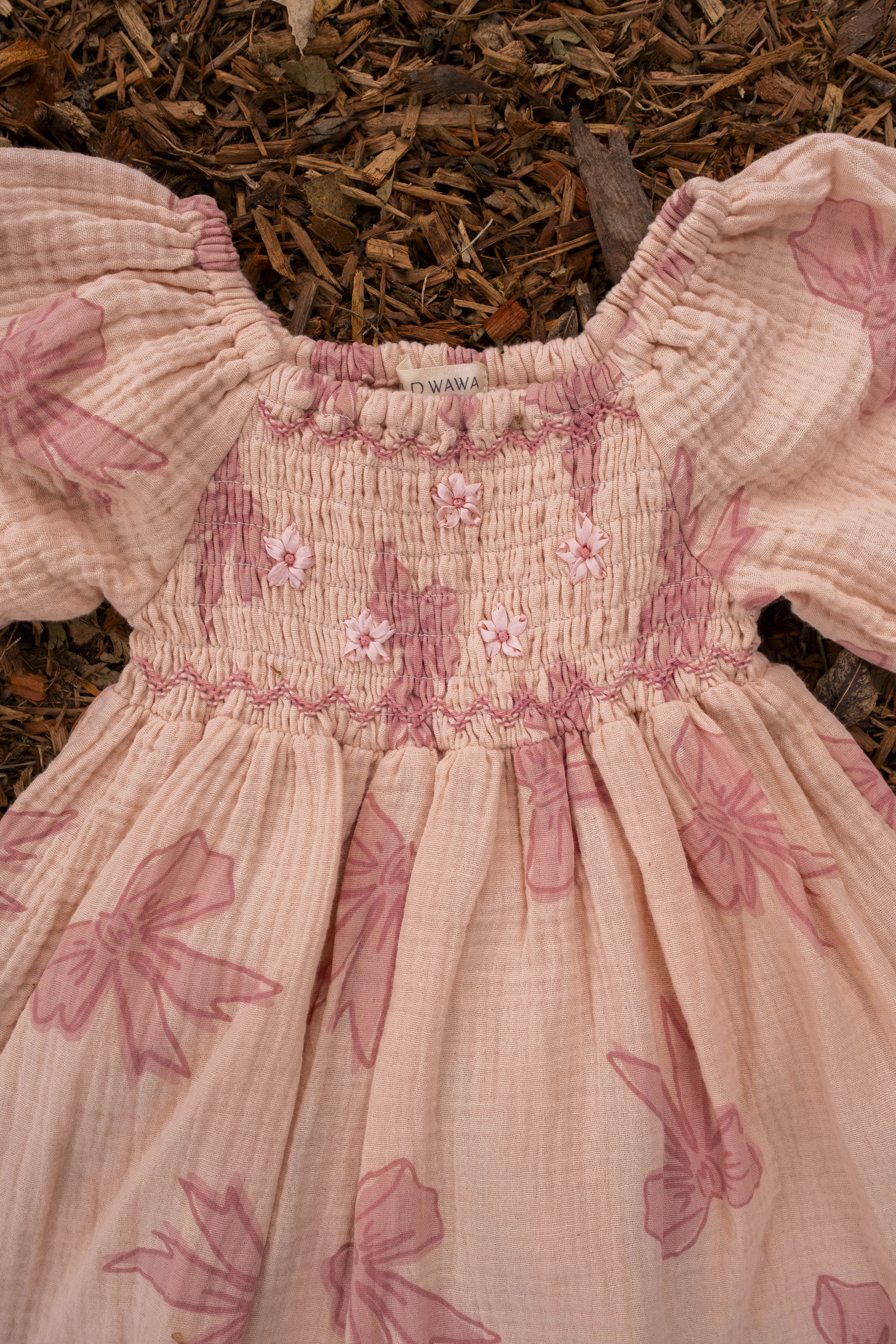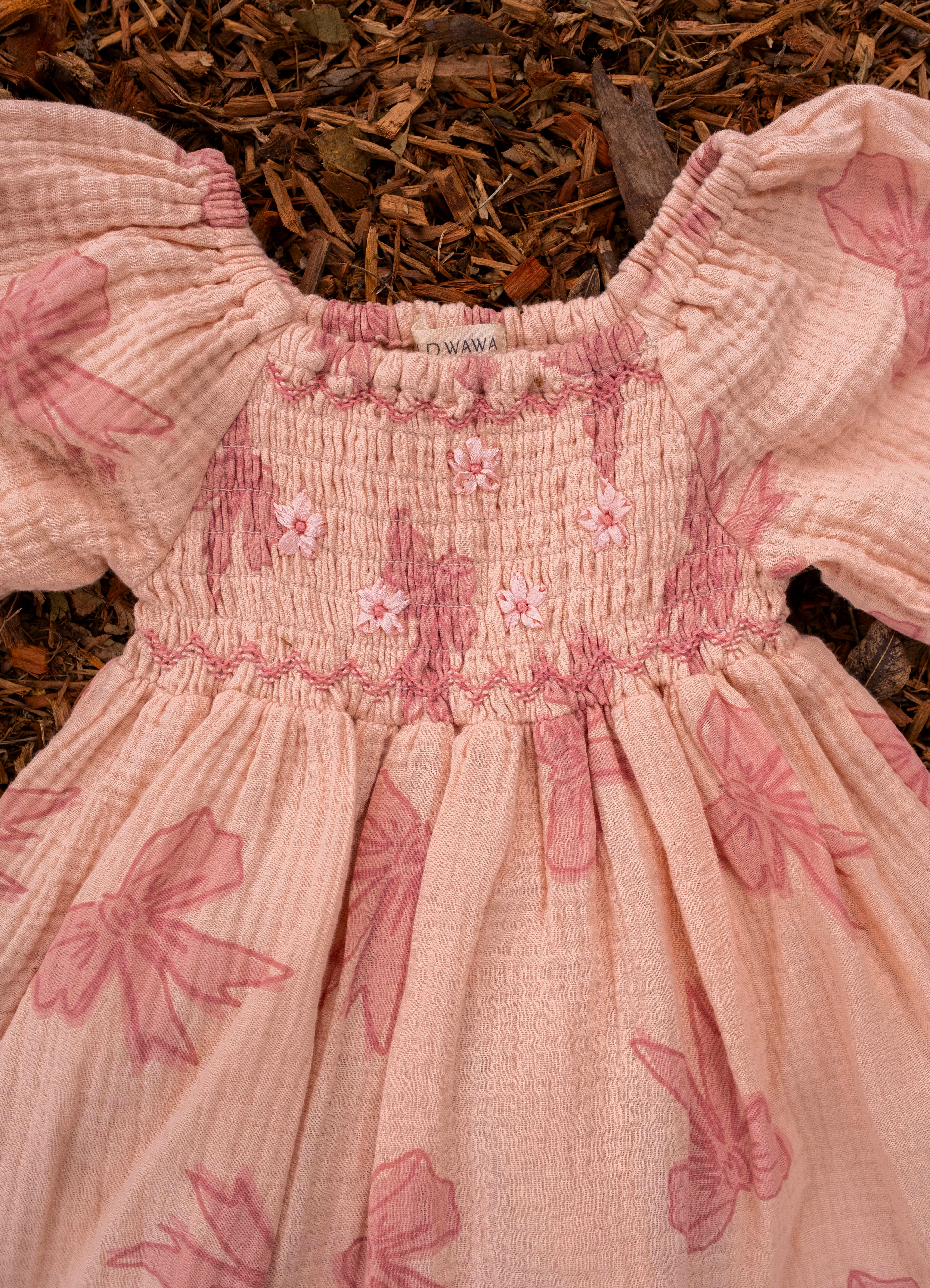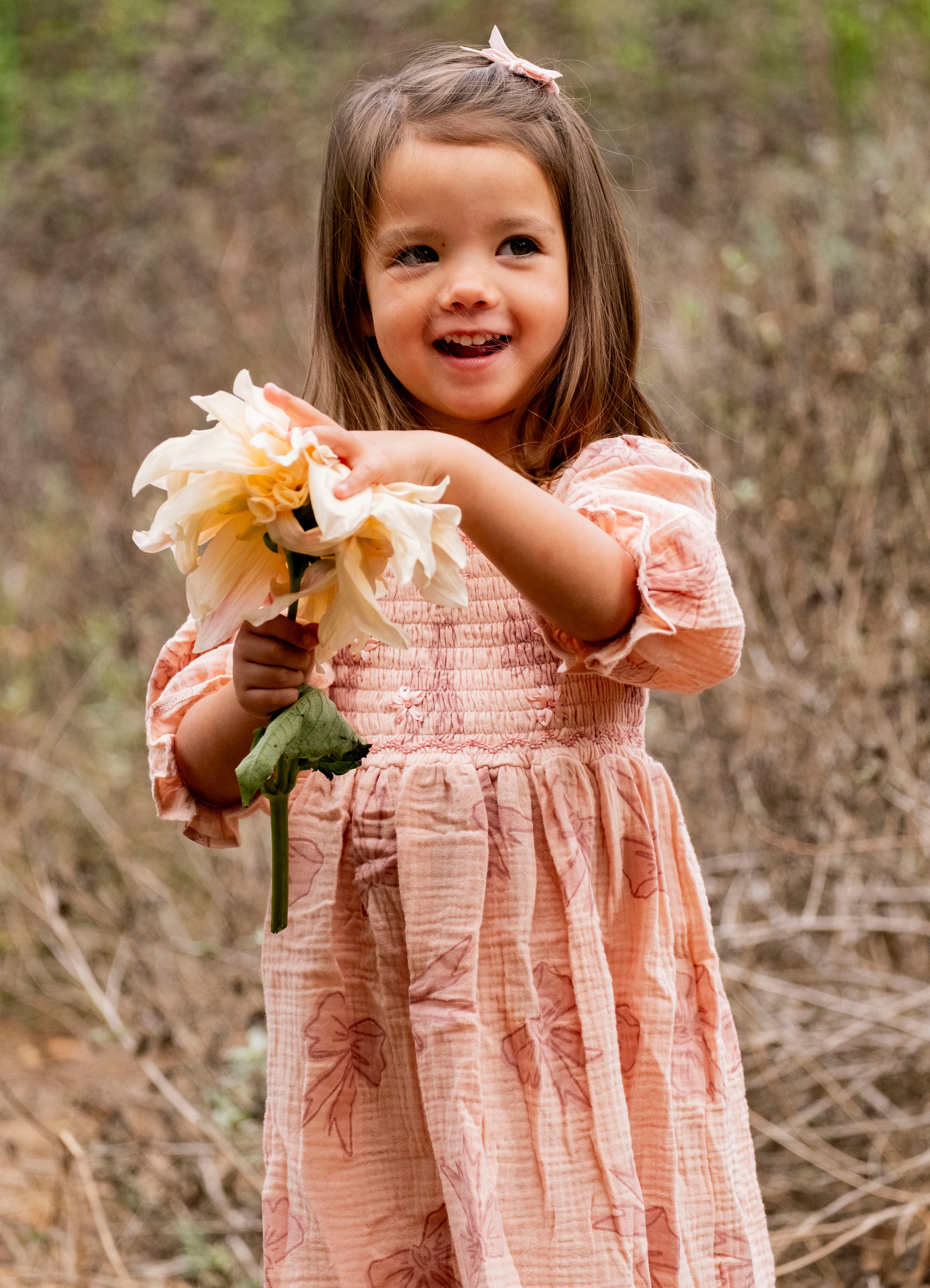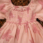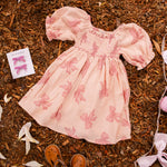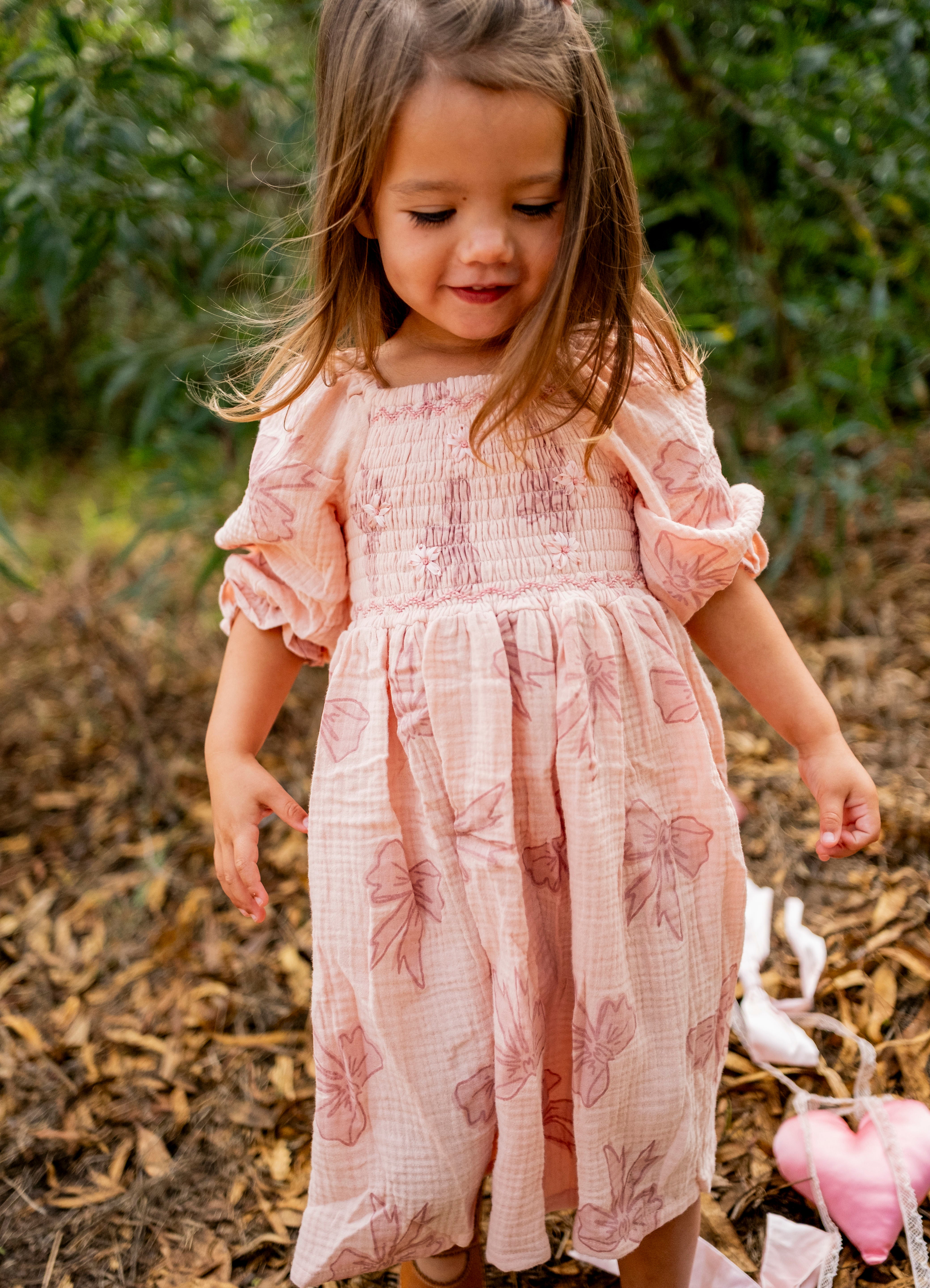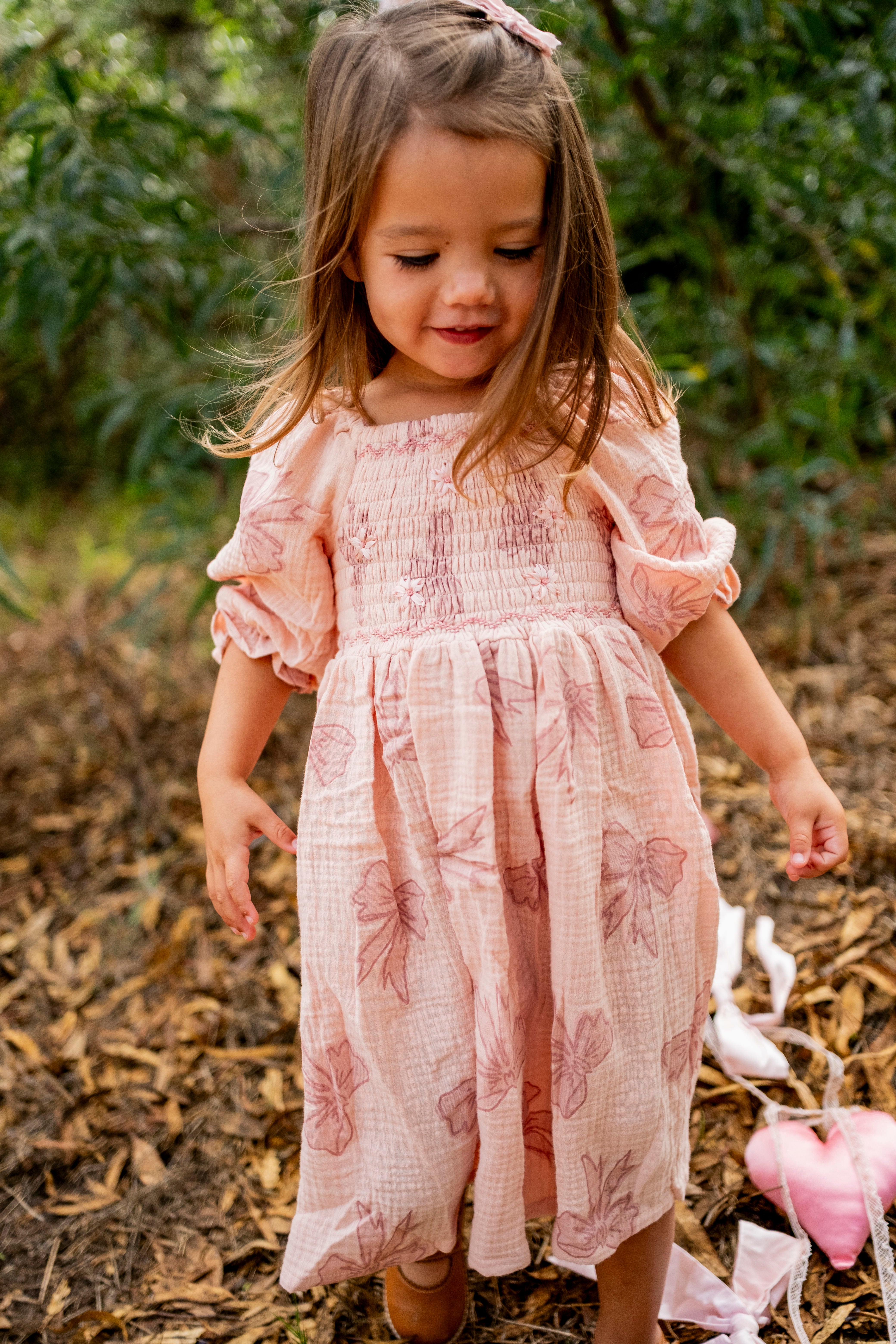 • Holiday dreams come true in our customer-loved Ivy dress featuring vintage-inspired girly bow prints in the softest dusty pink—pure magic for your little one