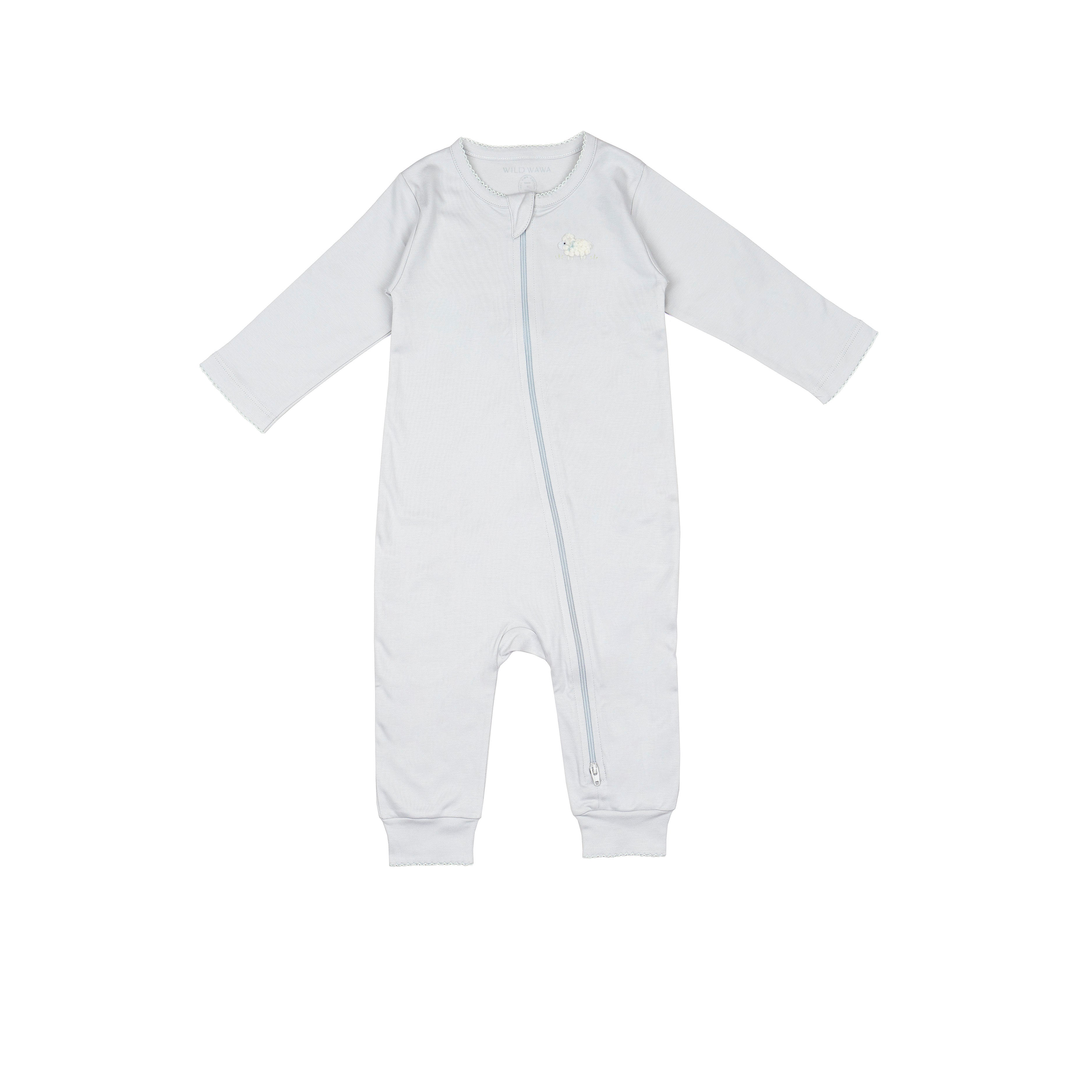 Pima Embroidered Footless Sleeper in Blue Lamb