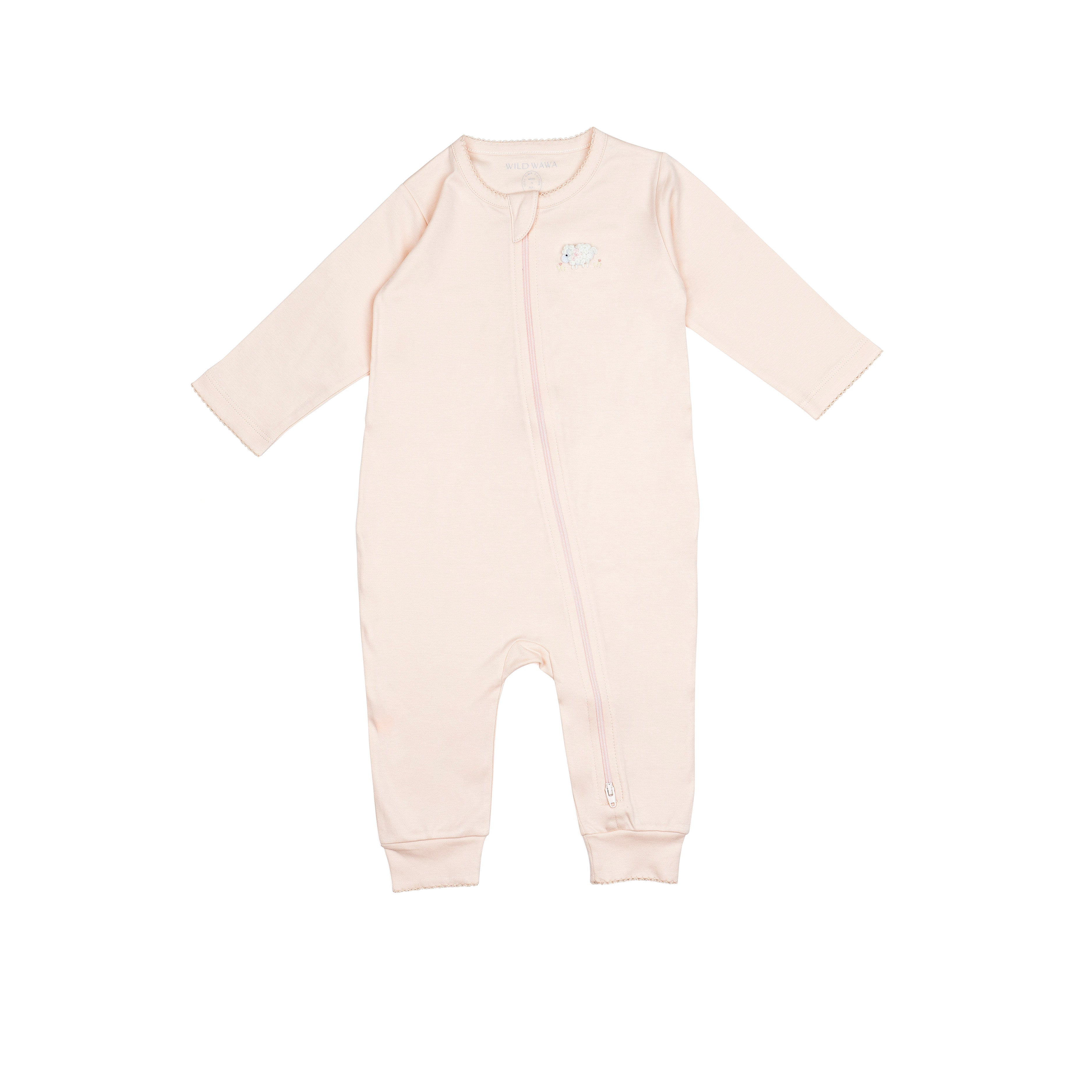 Pima Embroidered Footless Sleeper in Pink Lamb