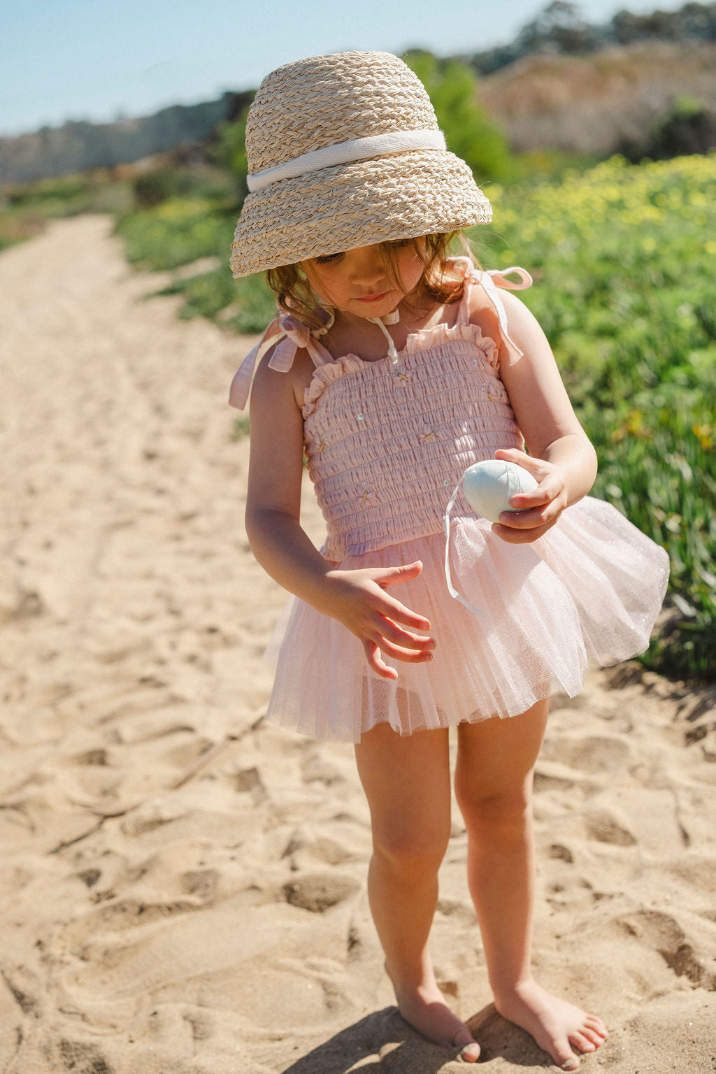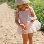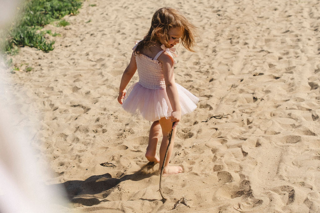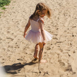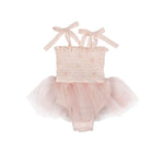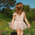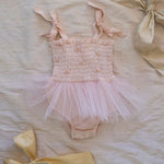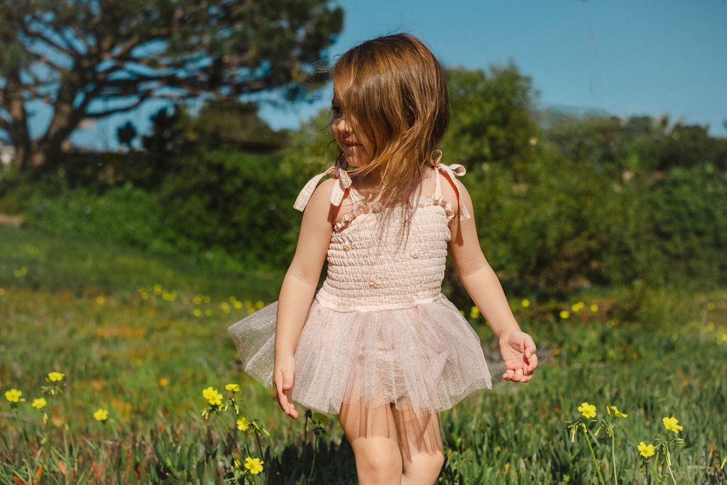 The elasticized bodice offers a comfortable, flexible fit while adjustable shoulder tie straps allow the piece to grow with your little one. A soft, airy tulle tutu skirt adds the perfect touch of sparkle and movement, making every step feel a little more special.