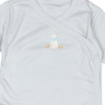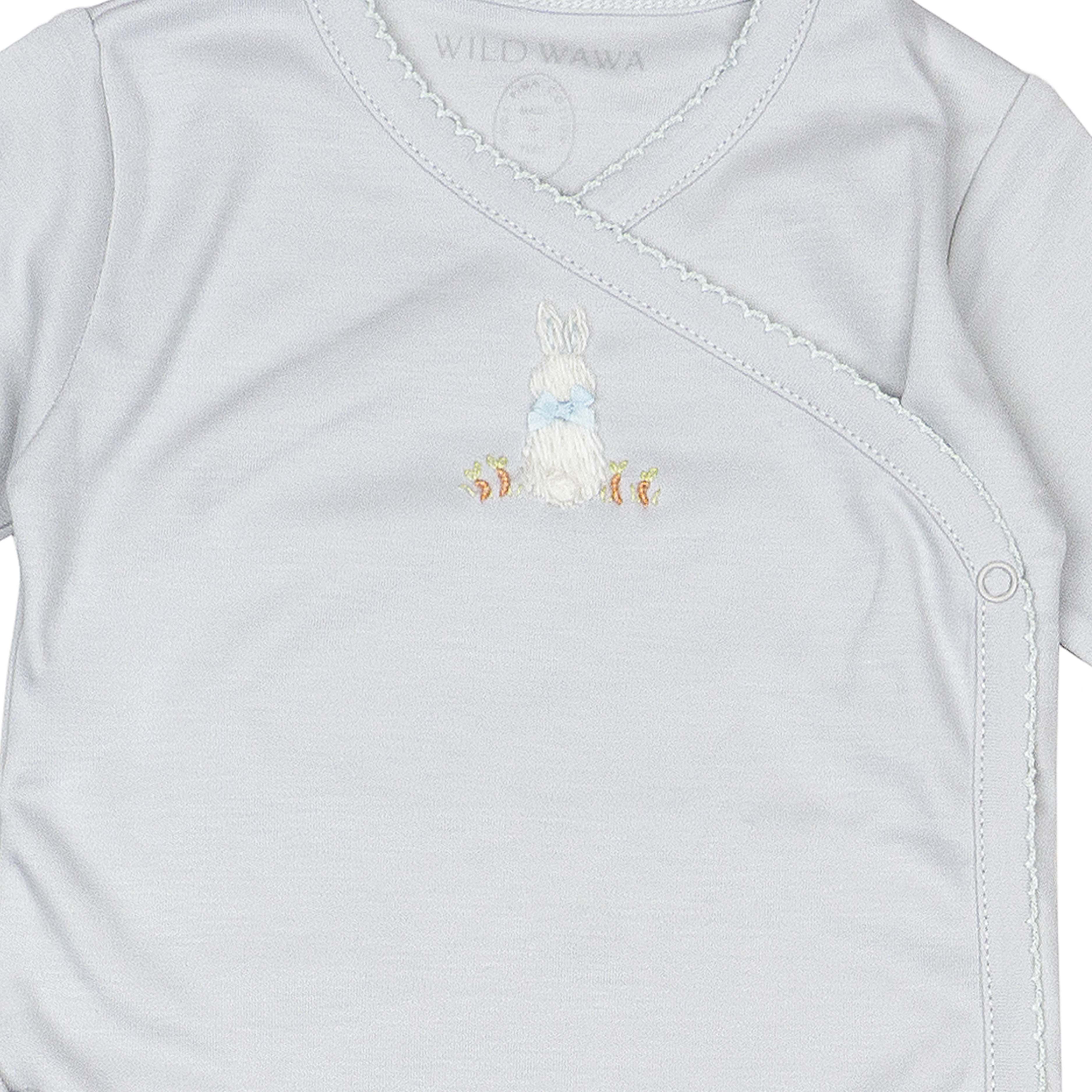 The earliest days deserve something truly special. Our Pima Embroidered Bundle Set in Blue Bunny wraps your little one in the softest comfort with thoughtful details that feel like heirlooms. Crafted from 100% Pima cotton, this 3-piece set is gentle on delicate newborn skin and perfect for all-day wear. The kimono-style cross front makes dressing peaceful and easy, while snaps at the inseam mean quick diaper changes without any fuss. Each piece features intricate hand-embroidered bunny details that add a touch of whimsy and charm. The long sleeve onesie, footed pants, and matching beanie come together as a complete look for everyday snuggles, first photos, or that precious welcome-home moment. A versatile set you'll reach for again and again—and treasure long after those newborn days have passed. Lovingly made in Peru.