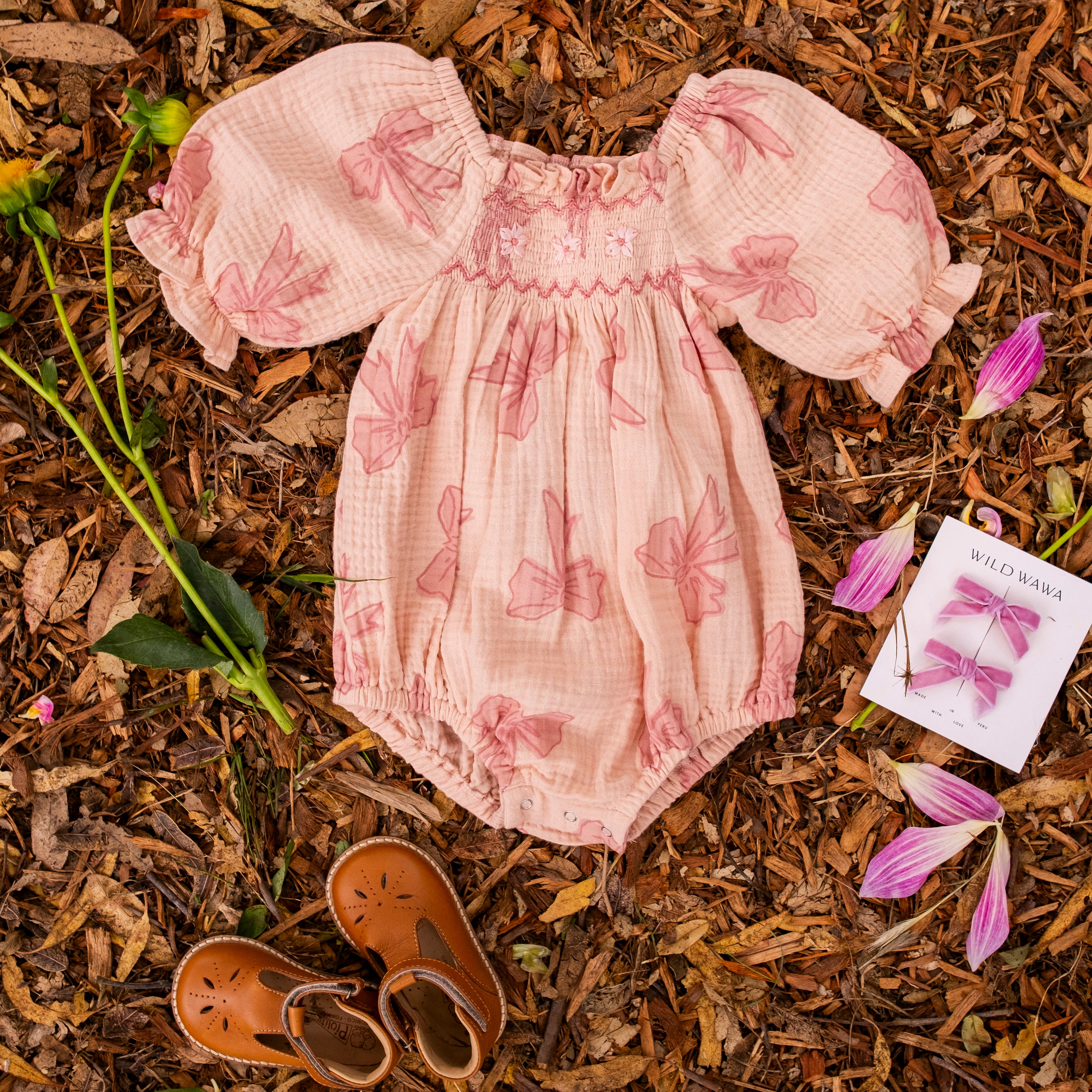 Ivy Romper - Vintage Bows Dusty Pink