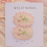 • Set of two hand-crocheted clips with hand-embroidered rose details