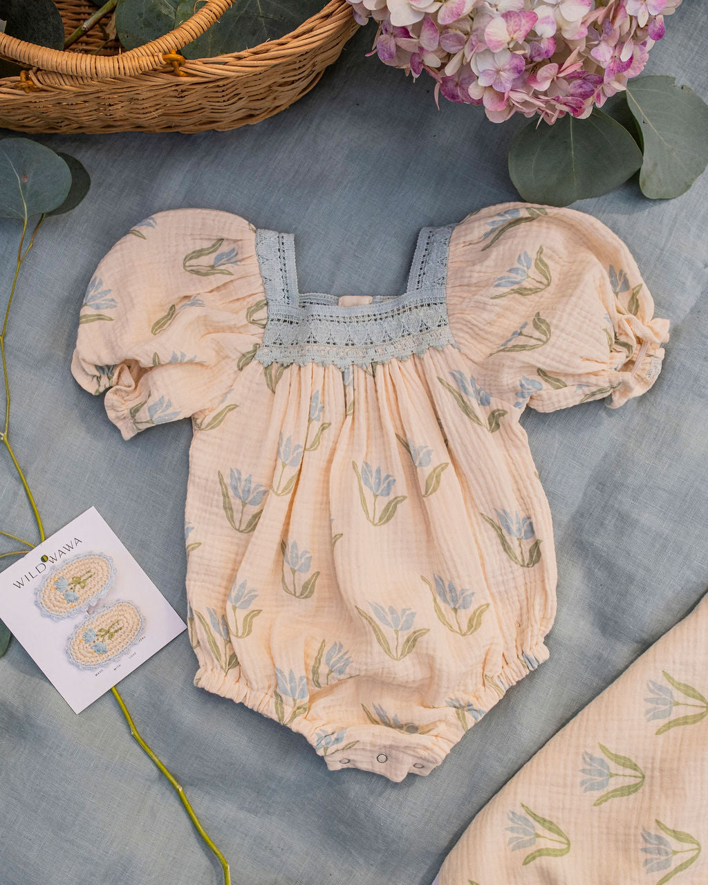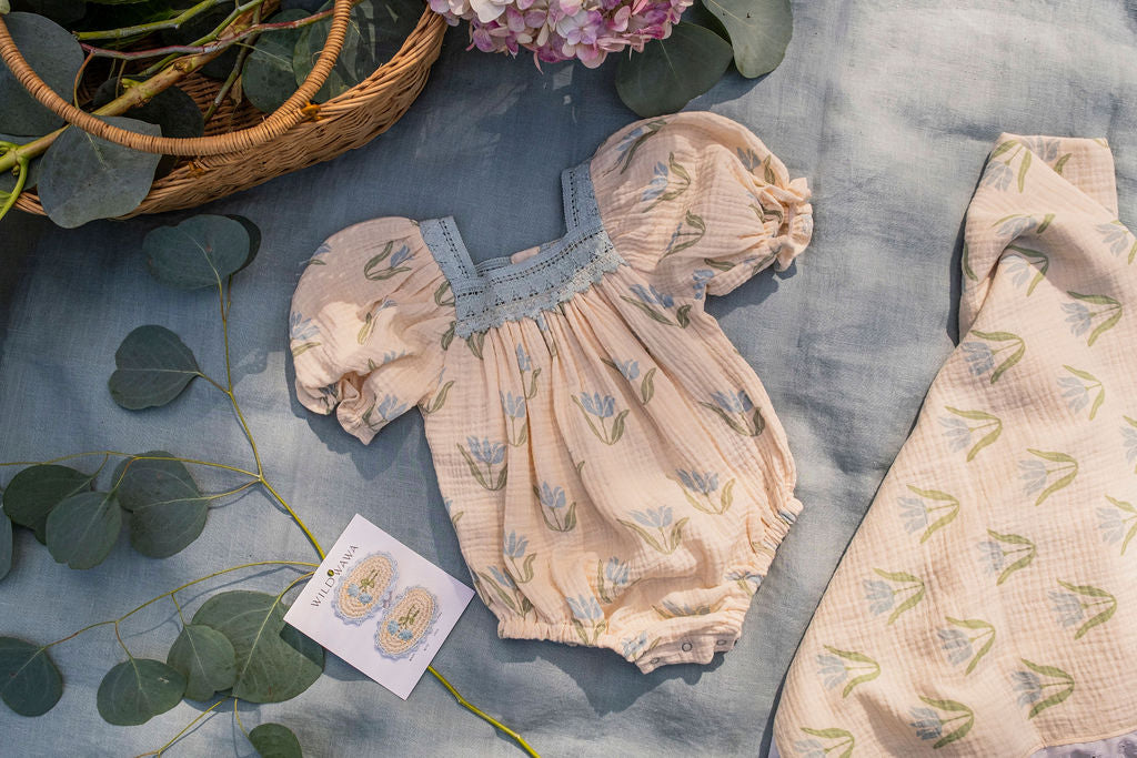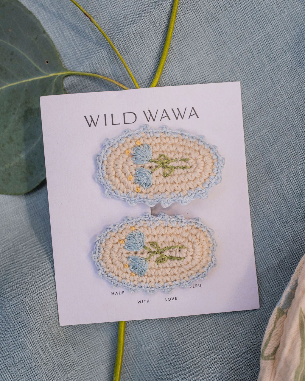 Sometimes the smallest details make the biggest impression. Our Crochet Clip Set in Blue Tulip is a sweet way to add a touch of heirloom charm to any outfit. Each clip features a delicate hand-crocheted tulip with carefully embroidered details, creating a soft, dimensional design that feels timeless and special. The set comes with two clips, perfect for tucking into braids, pinning back wispy hair, or adding a whimsical touch to ponytails and buns. Finished in a dreamy blue palette that echoes our hand-drawn Blue Tulip print, these clips bring a gentle sweetness to your little one's look while pairing beautifully with everything in their wardrobe. They're lightweight, gentle on fine hair, and made to be worn over and over again. Handmade slowly in Peru, this is the kind of accessory that turns everyday moments into something a little more memorable.