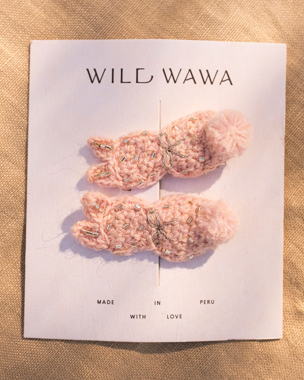Sometimes the smallest details make the biggest impression. Our Crochet Clip Set in Pink Bunny is a sweet way to add a little something special to any outfit. Each bunny is carefully hand-crocheted with delicate attention to detail, creating a soft, dimensional shape that feels charming and playful. The set comes with two clips, perfect for tucking into braids, pinning back wispy hair, or adding a whimsical touch to ponytails and buns. Finished in a soft, sweet pink tone, these clips bring a pop of color and joy to your little one's look. They're lightweight, gentle on fine hair, and made to be worn over and over again. Handmade slowly in Peru, this is the kind of accessory that turns everyday moments into something a little more memorable.