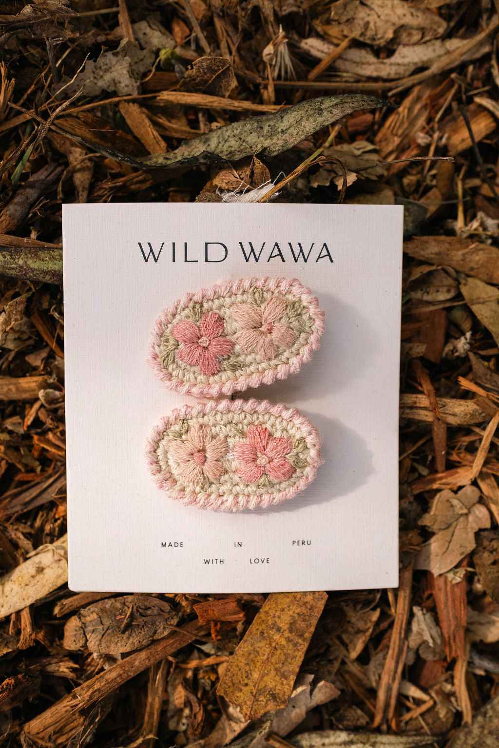 • Hand-crafted crochet hair clips made with love in Peru