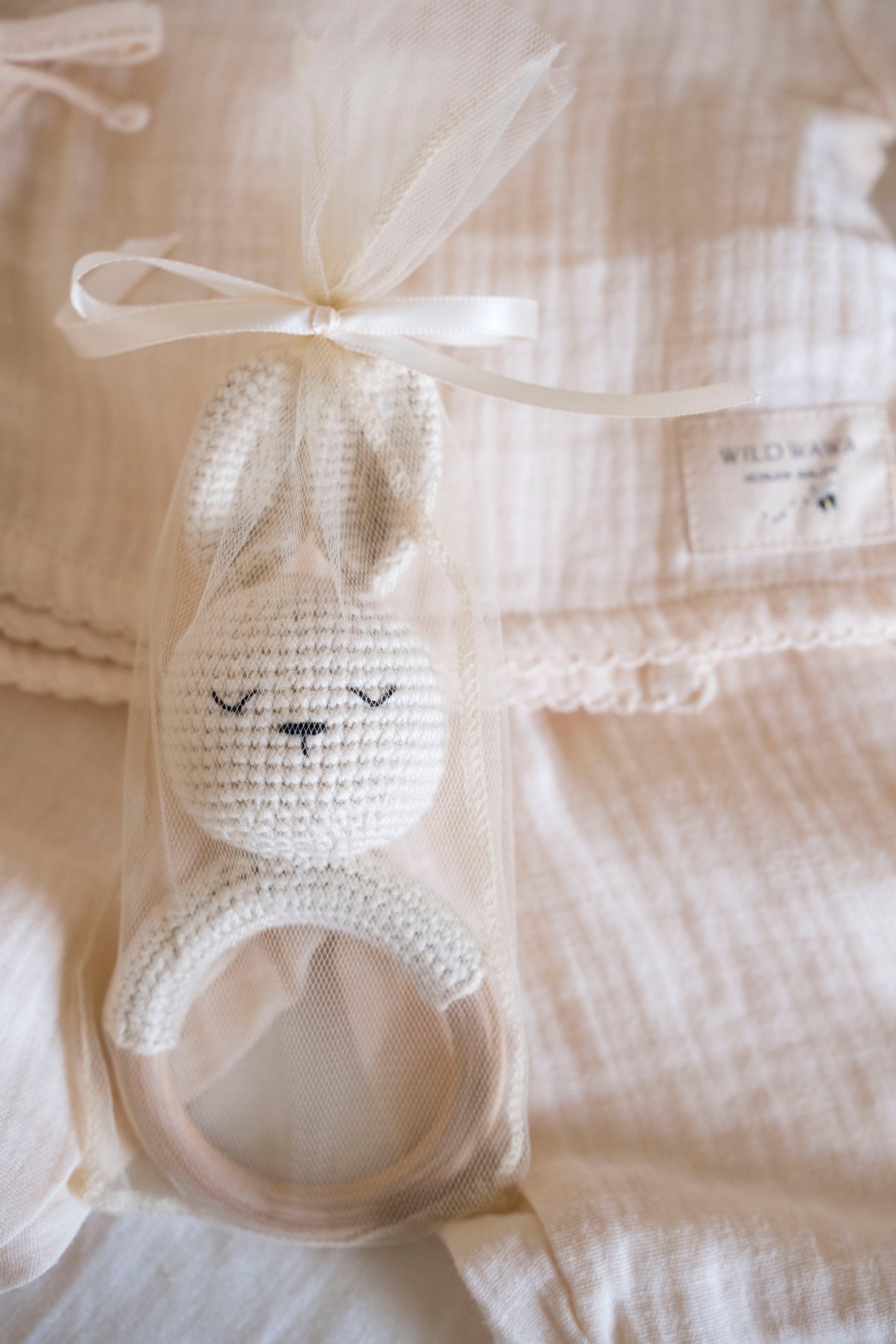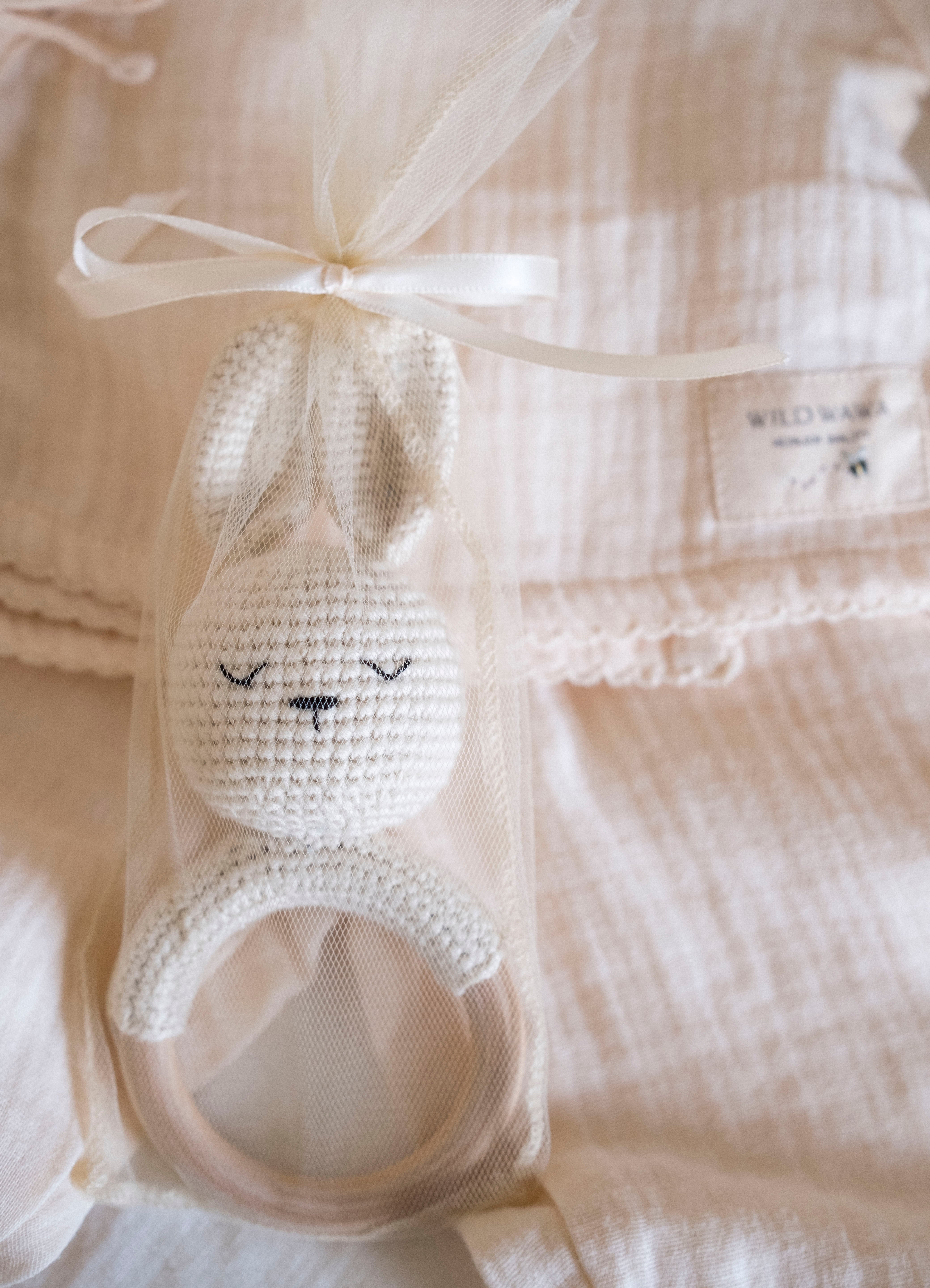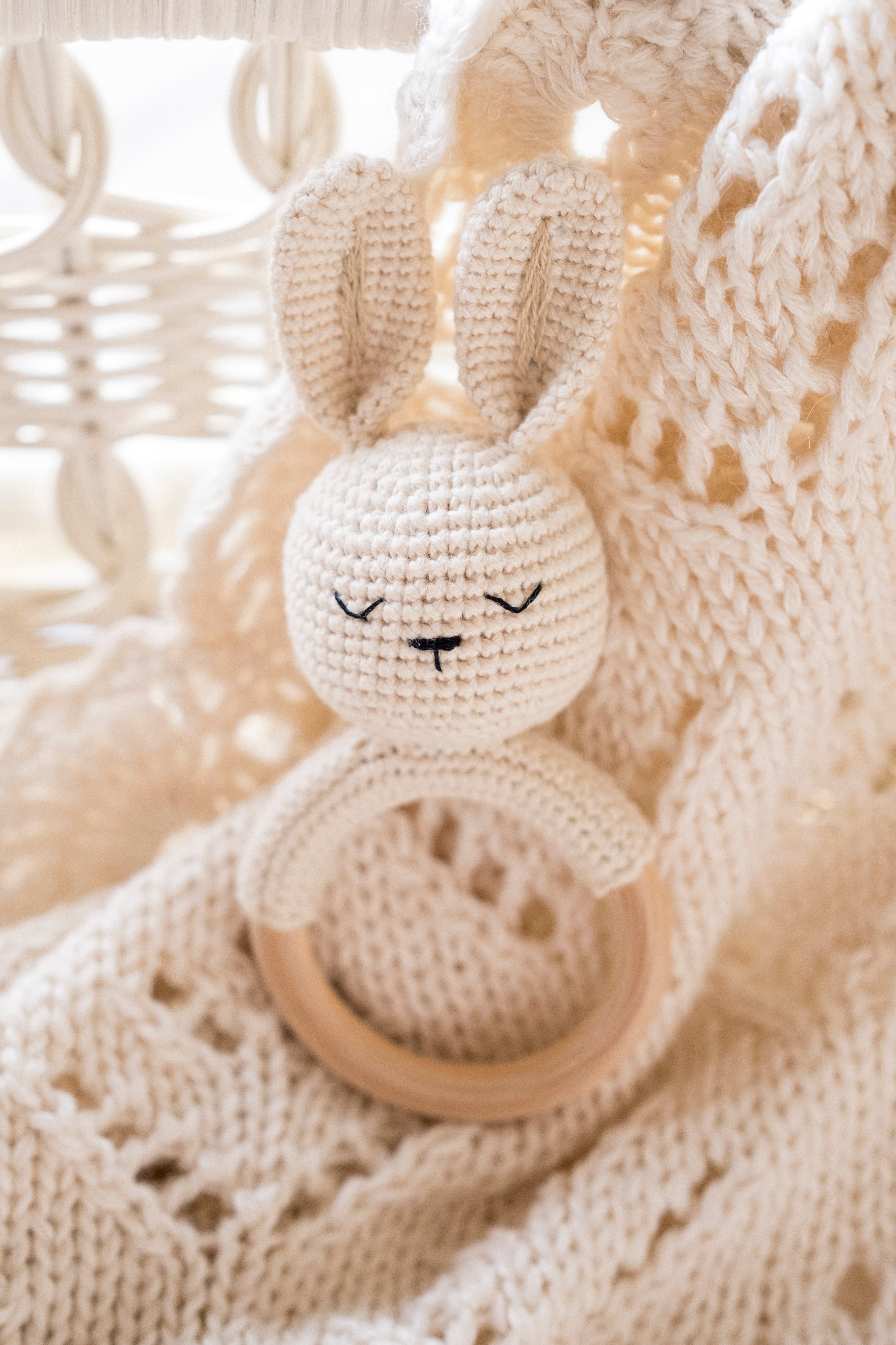 • Hand-crocheted bunny design