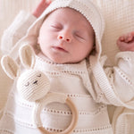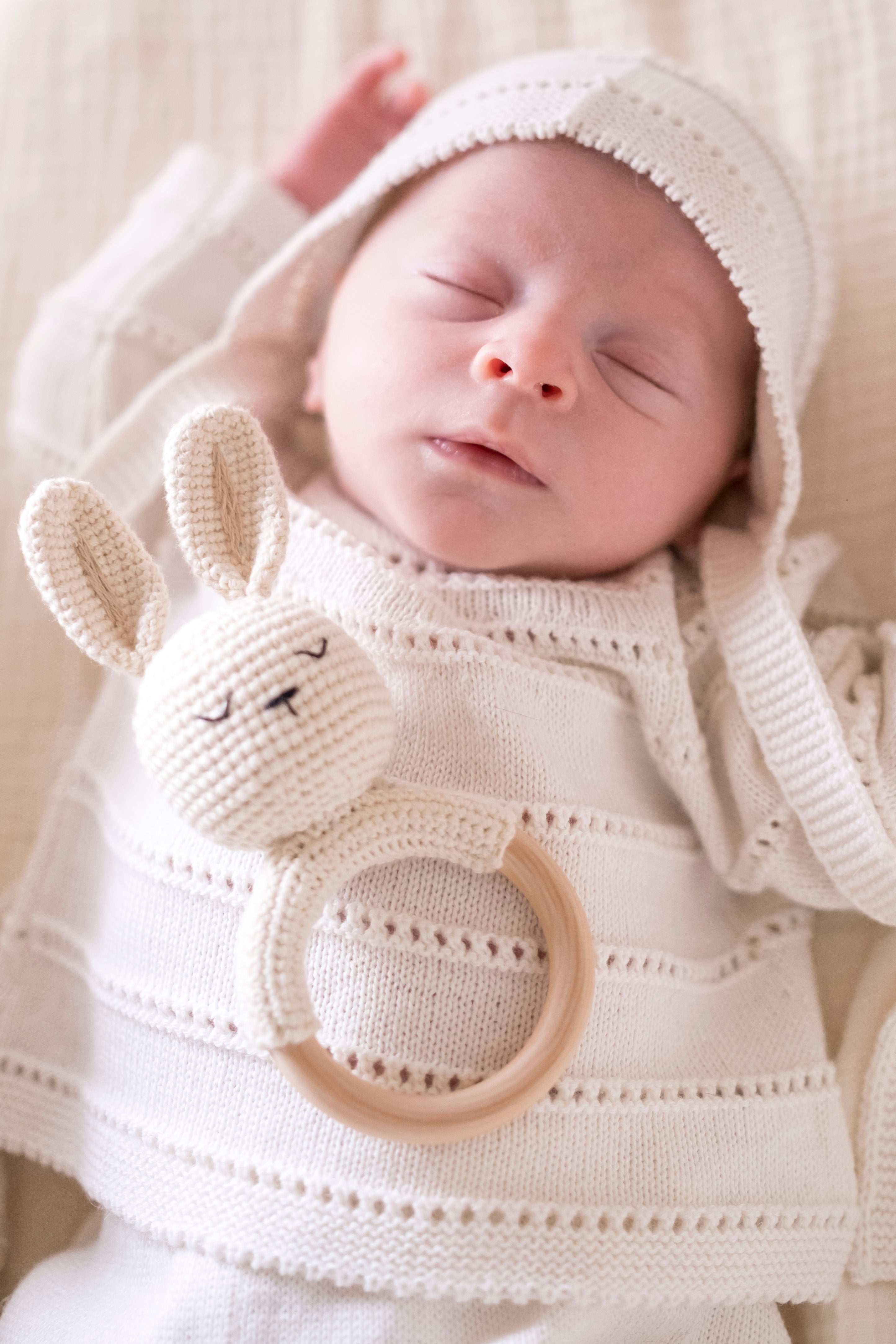 The simplest toys become the most treasured. Our Crochet Rattle in Bunny is hand-crocheted from 100% Pima cotton with soft, gentle details that are perfect for tiny hands to grasp and explore. The gentle rattle sound keeps baby engaged without being overwhelming, making it ideal for tummy time, car rides, or quiet play. Thoughtfully crafted for durability and softness, this little rattle is as sweet as it is functional—the kind of keepsake that gets tucked away long after baby has outgrown it. A thoughtful gift for baby showers, welcome-home moments, or simply adding a touch of heirloom charm to the nursery. Lovingly made in Peru.