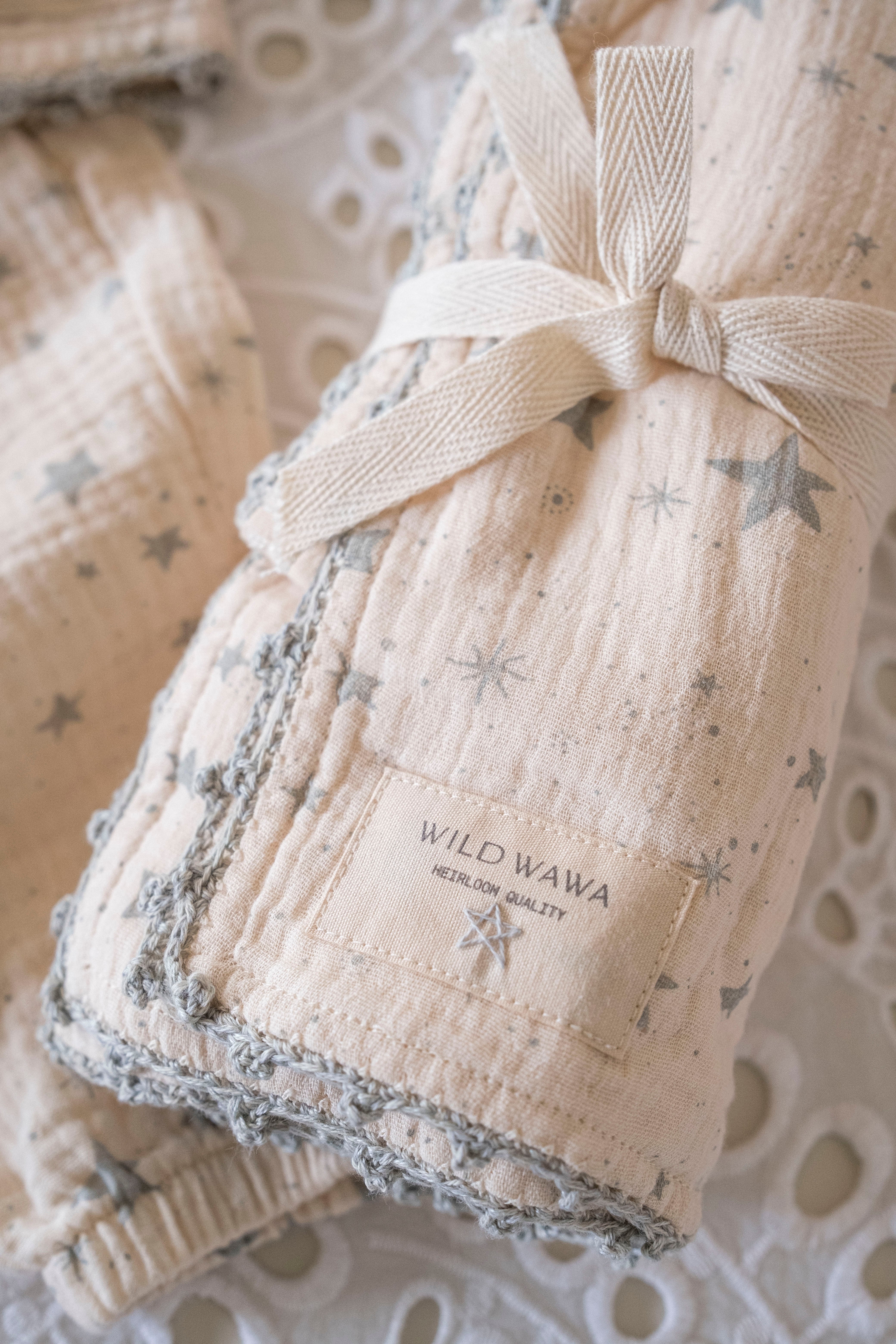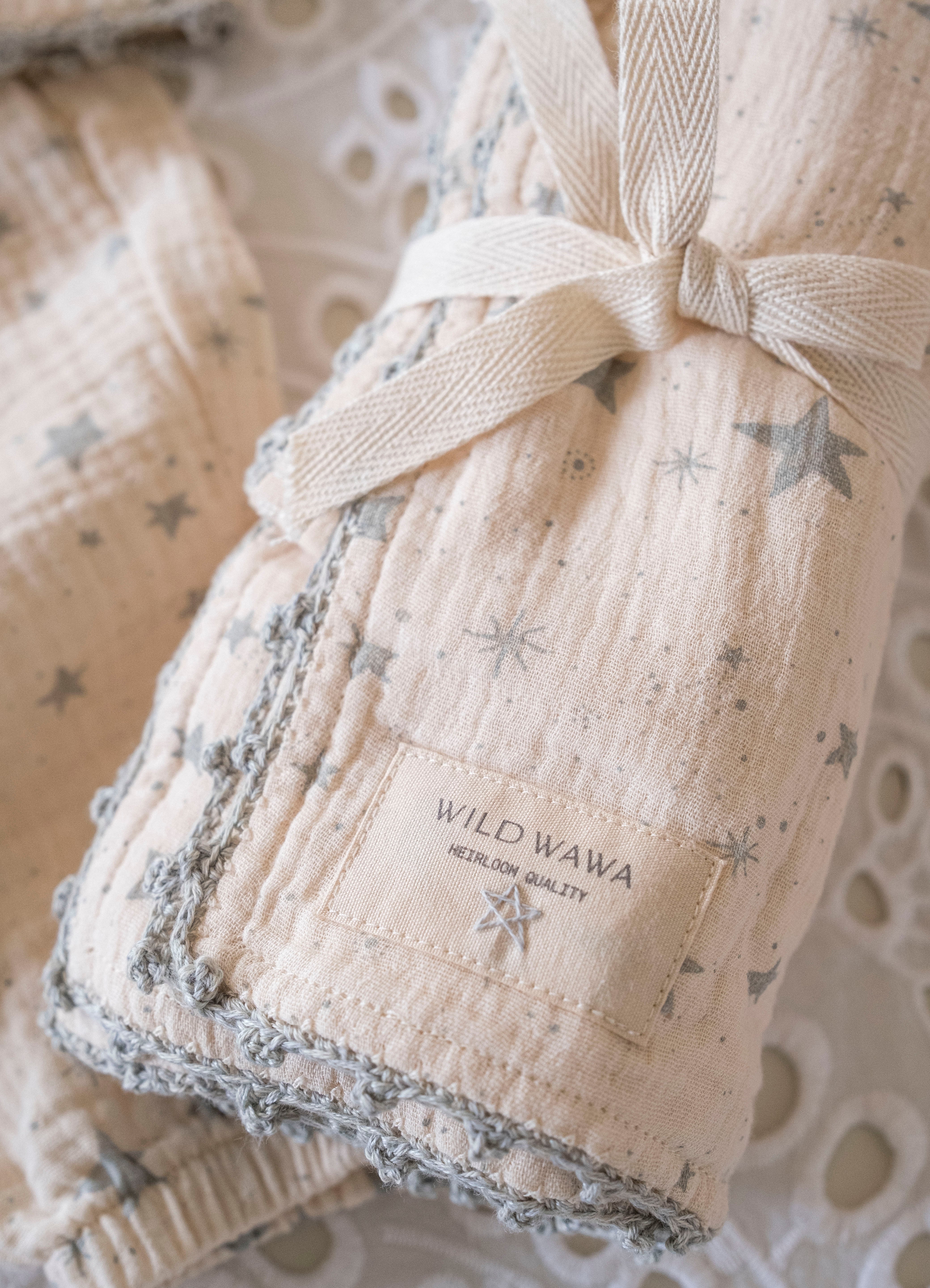 Crochet Trim Swaddle in Stars