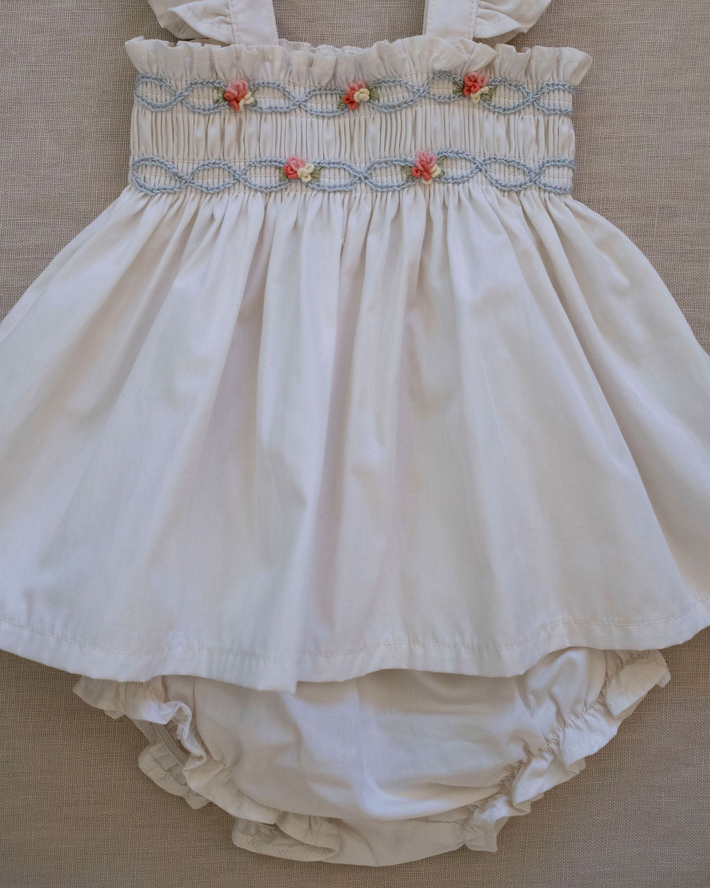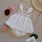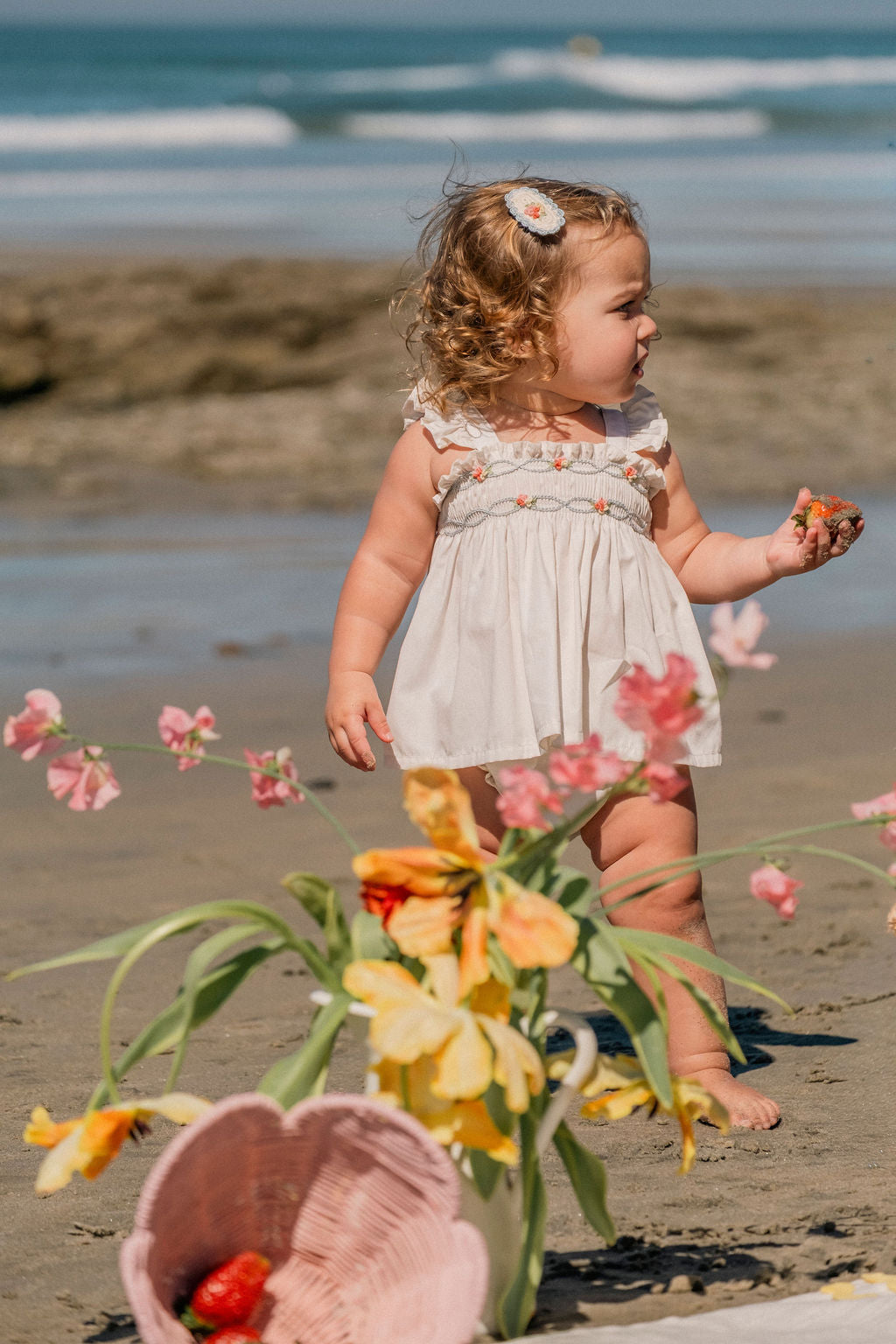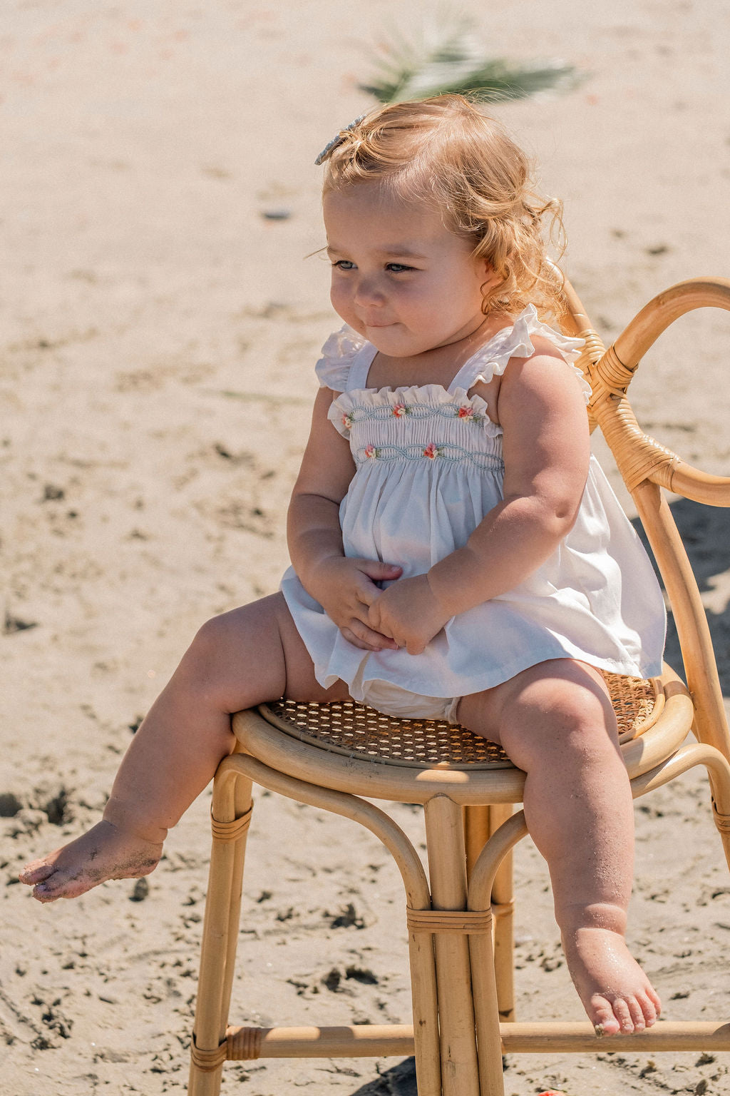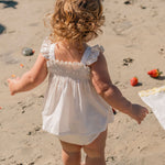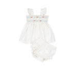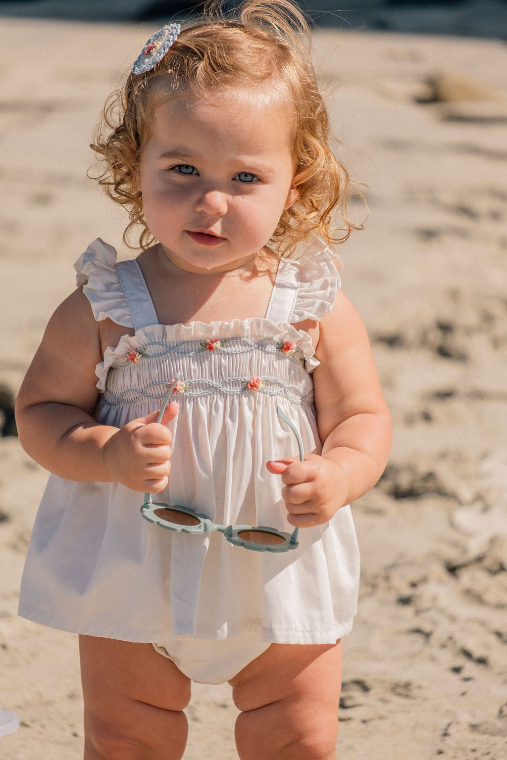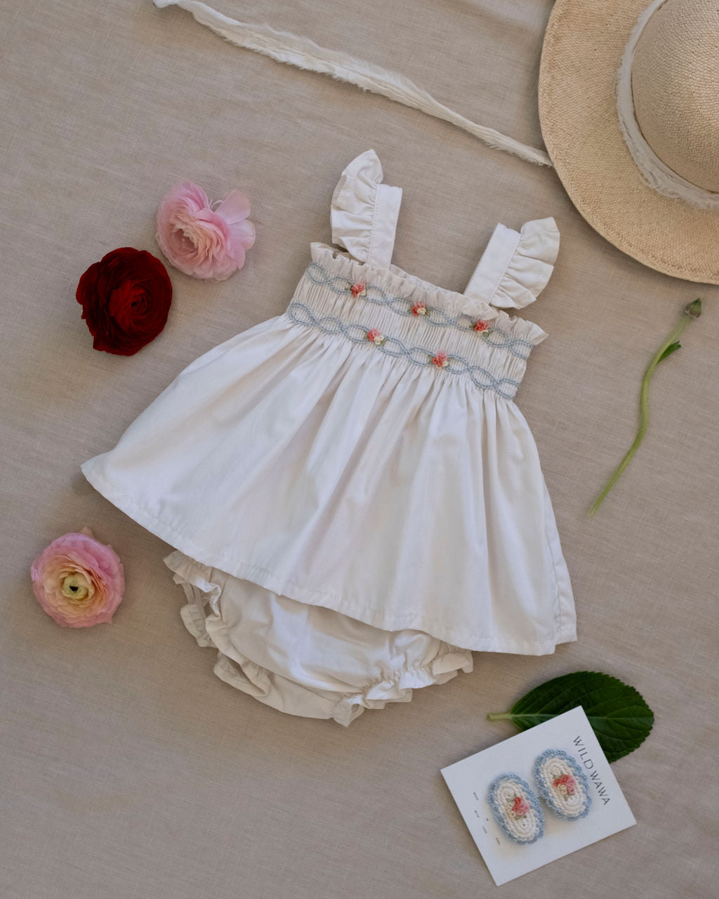 A set that captures the sweetness of childhood in every delicate detail. Our Embroidered Flutter Set in Ivory features beautiful hand-embroidered accents that add an heirloom quality and artisanal touch. The classic ivory palette feels fresh and timeless, while charming flutter details bring a playful, feminine element that's perfect for little ones. The coordinated top and bottom create an effortlessly elegant look that works beautifully for special gatherings or everyday moments worth celebrating.