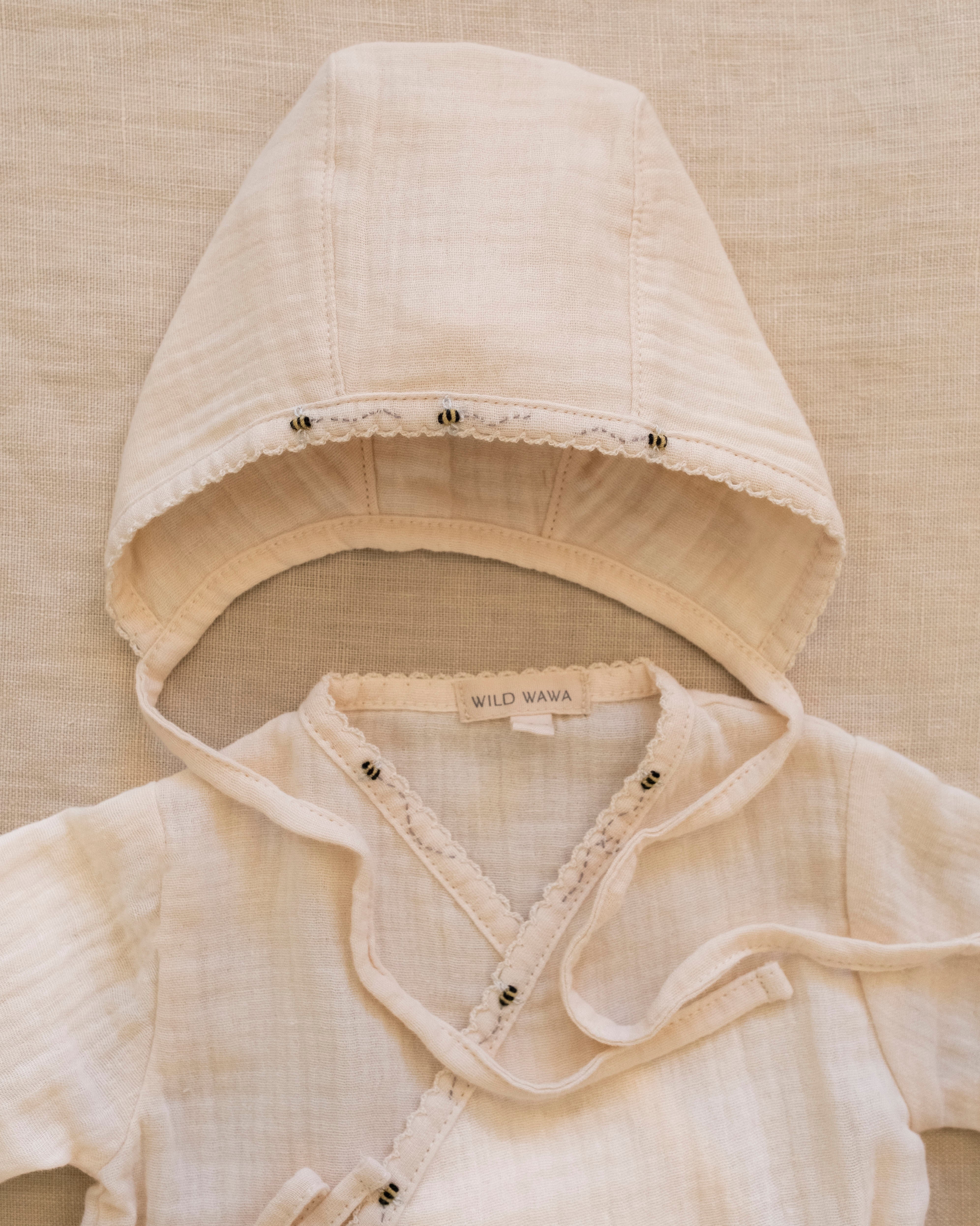 • Kimono-style wrap front for easy newborn dressing