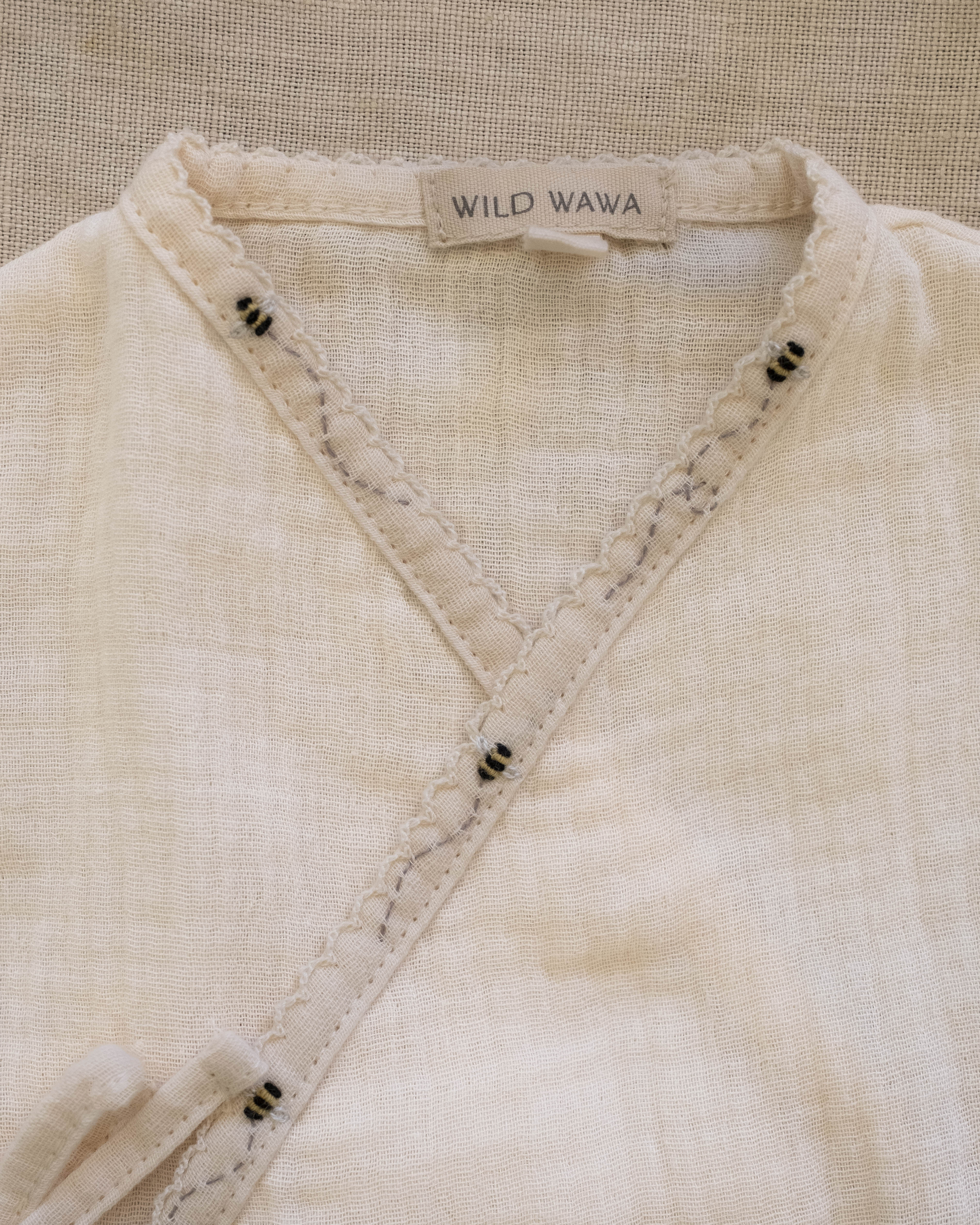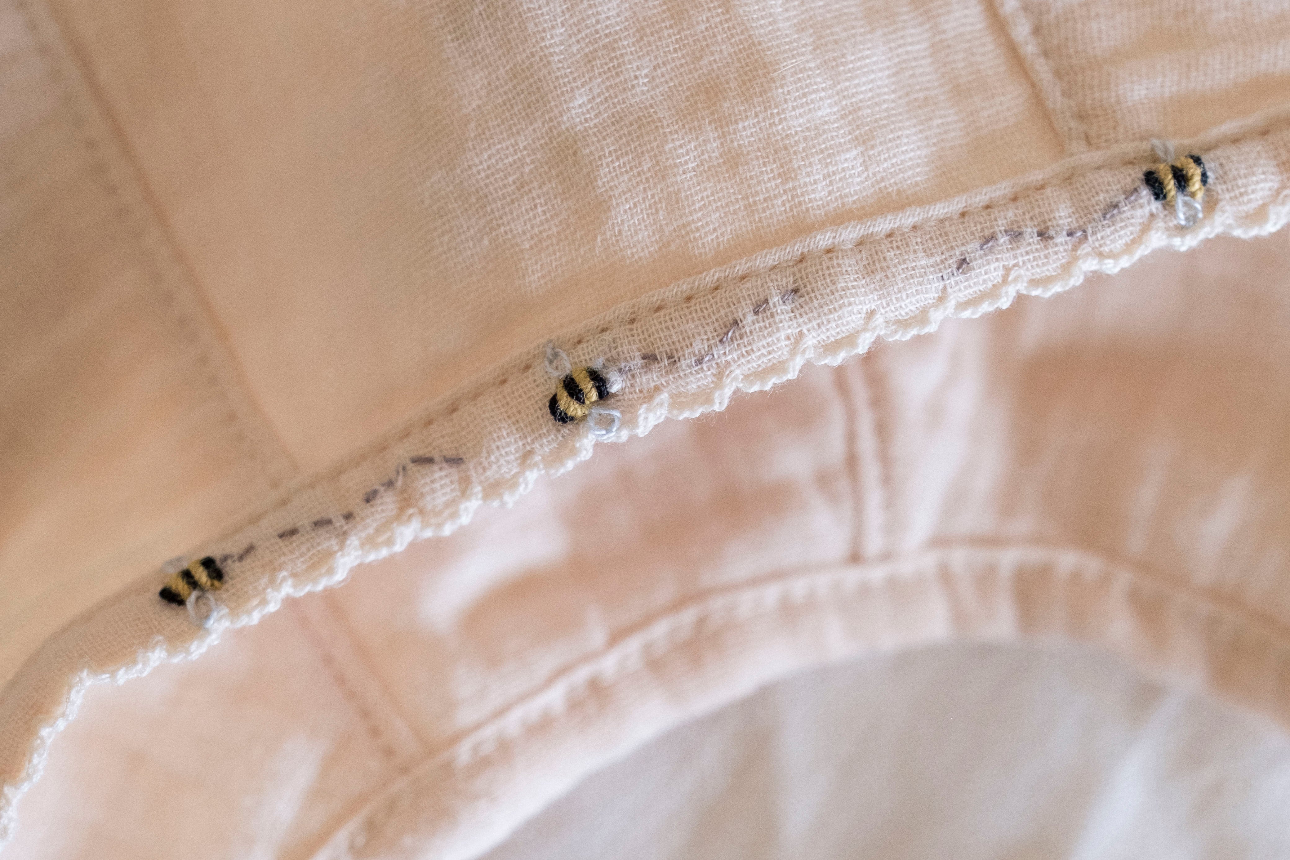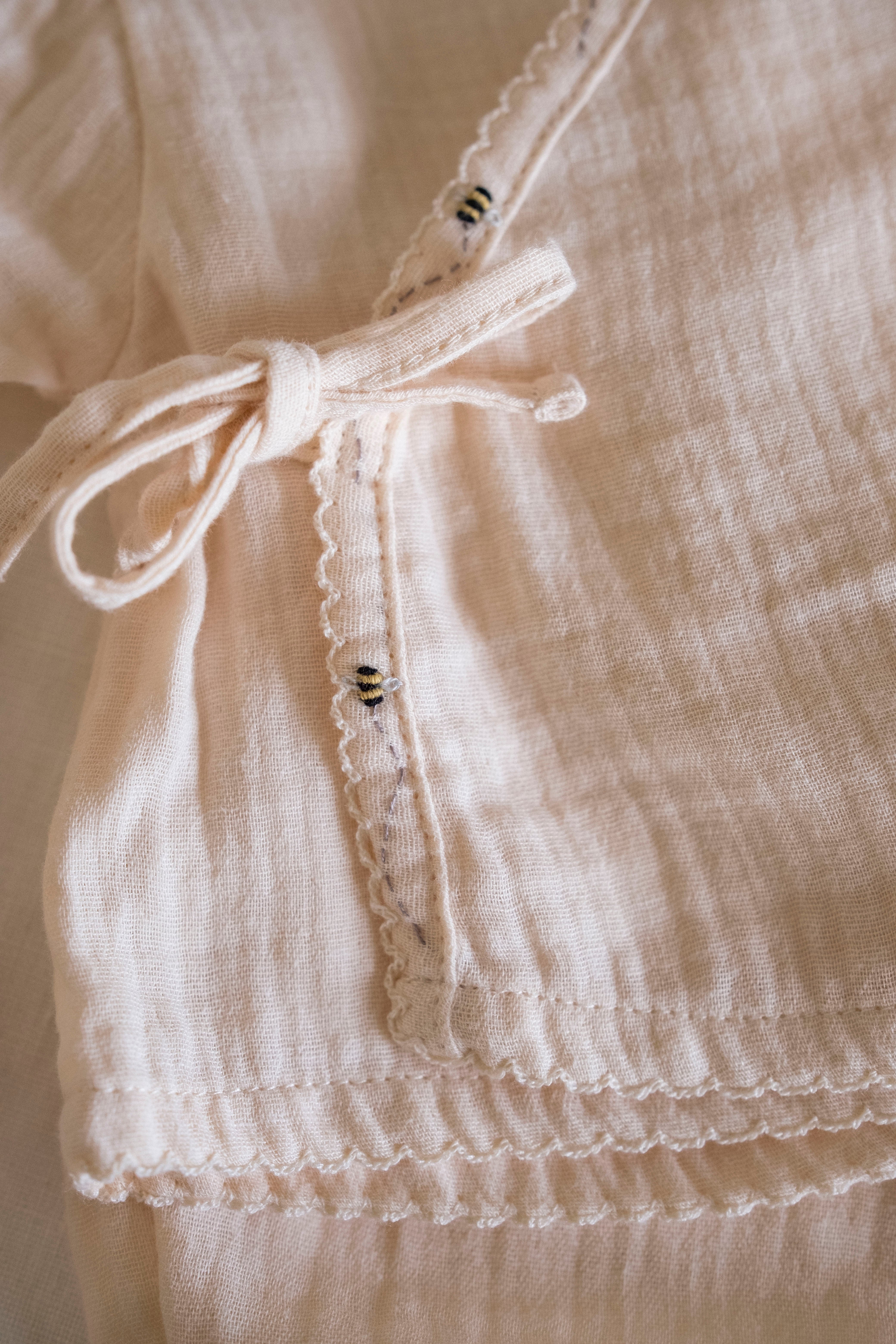• Features subtle embroidered details of sweet pearl bees