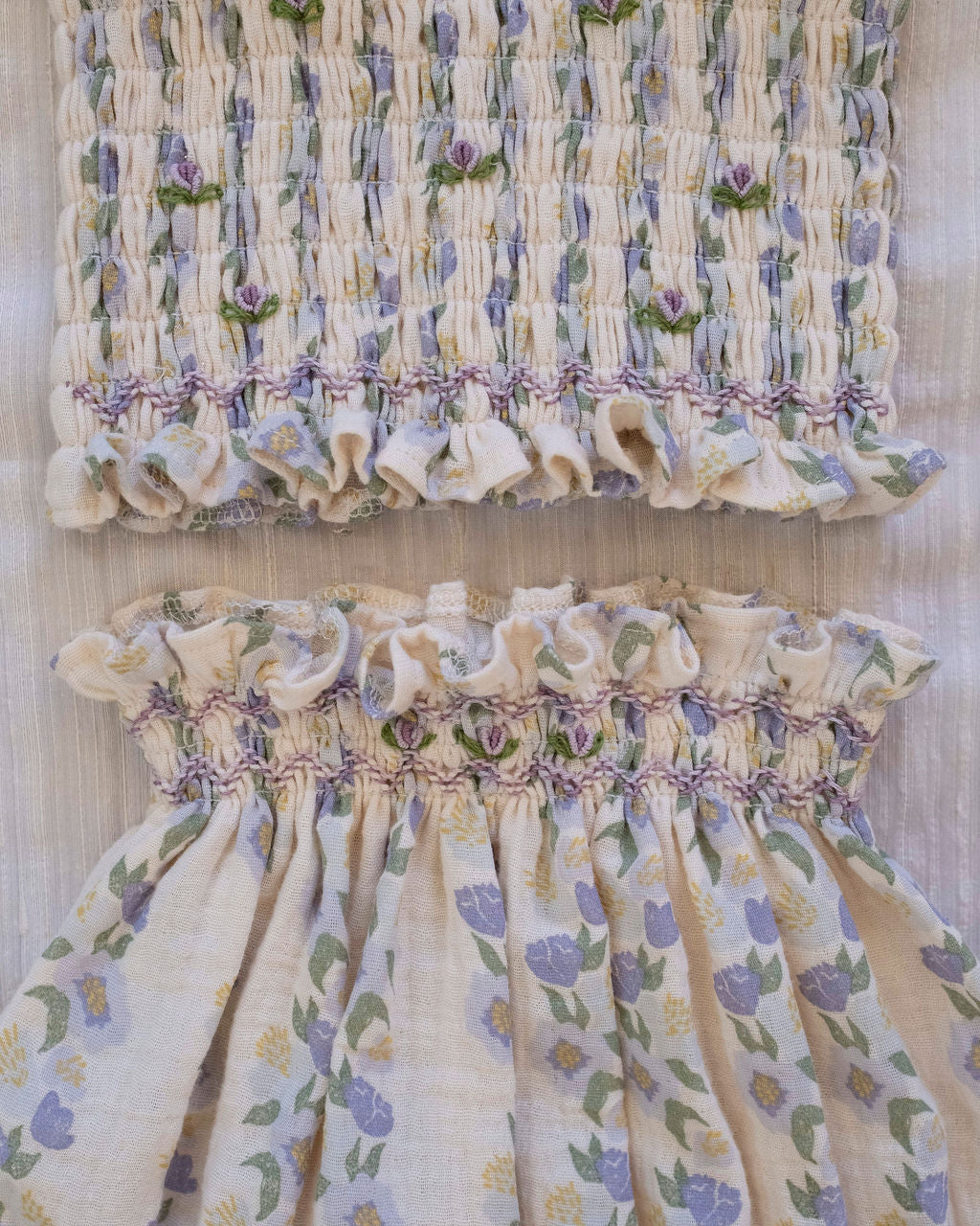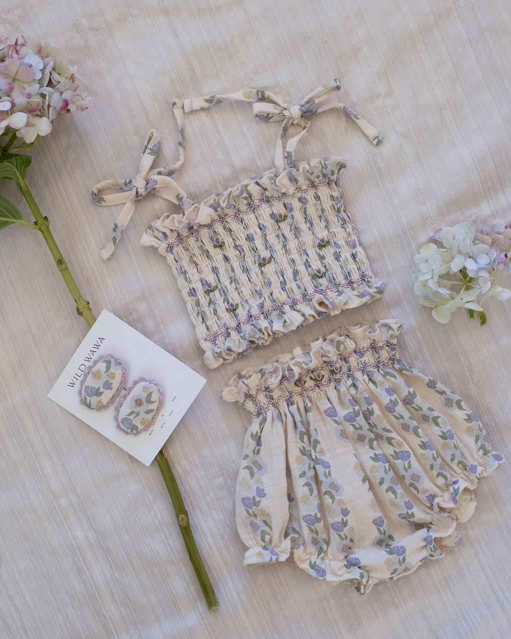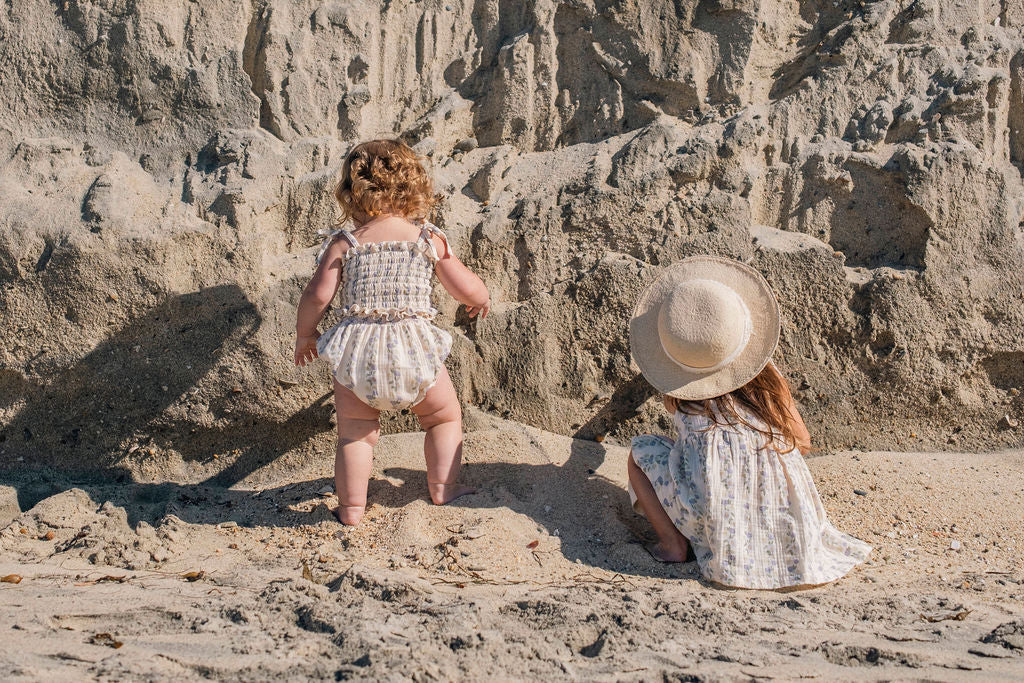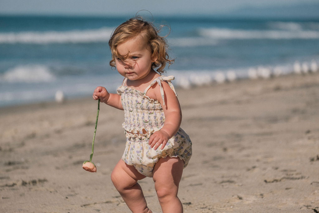 A set that captures the magic of lazy summer days and sweet childhood moments. Our June Set in Lavender Rose Reverie features a dreamy hand-drawn floral print created in-house with meticulous care, bringing vintage-inspired romance to everyday wear. The soft lavender hue feels enchanting and serene, adorned with delicate rose motifs that evoke the beauty of blooming gardens. This coordinated top and bottom set takes the guesswork out of getting dressed, creating an effortlessly put-together look that's perfect for everything from morning farmers markets to sunset beach walks.