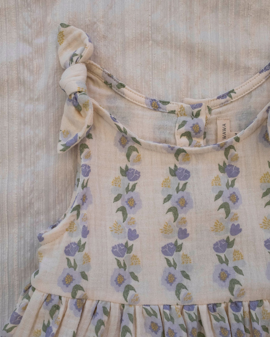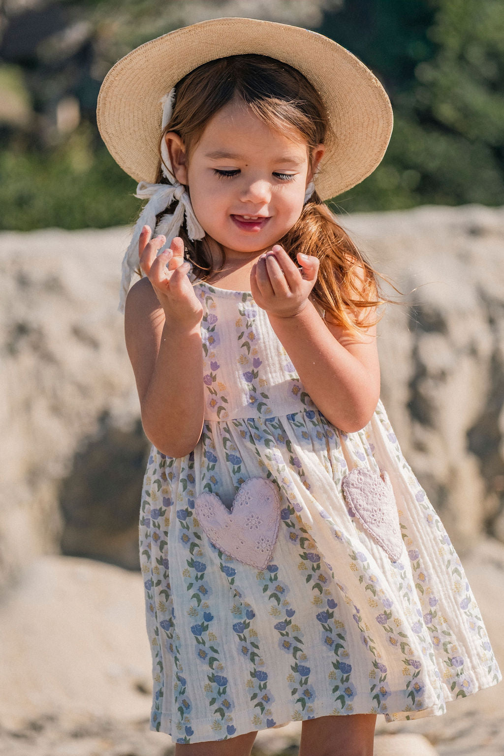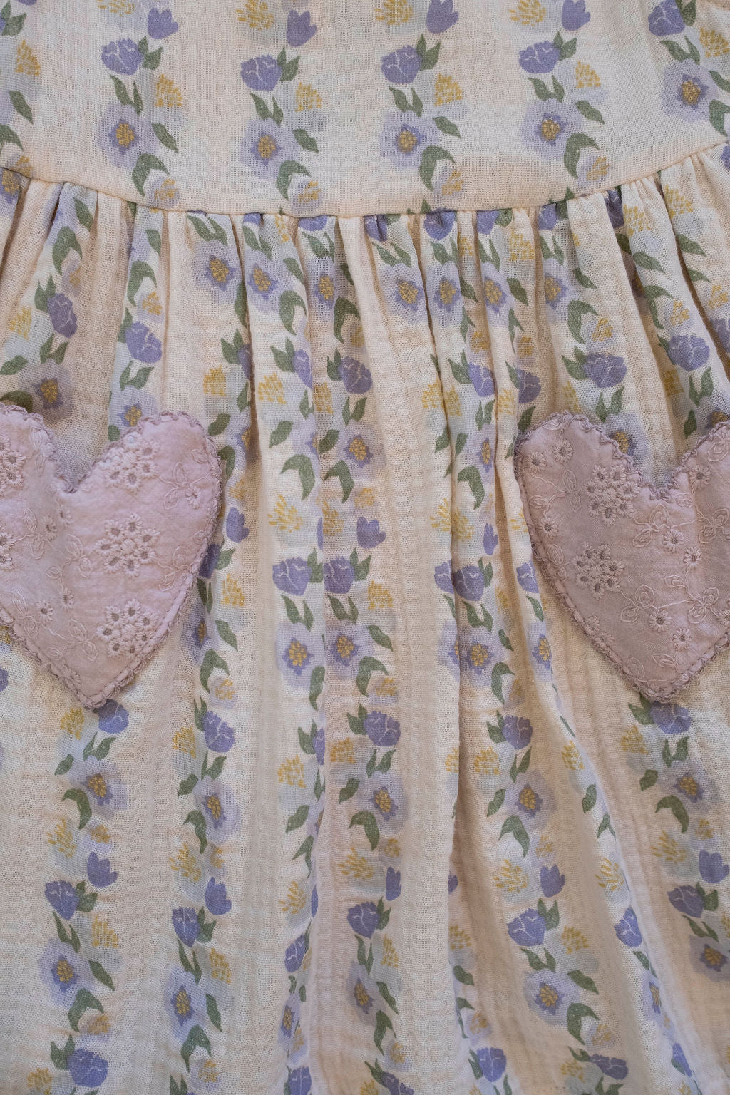 Comfortable fit that grows with your child, while the soft, airy cotton gauze drapes beautifully and feels gentle against the skin. Crafted in a dreamy lavender palette with romantic rose motifs, this dress works effortlessly from spring celebrations to everyday adventures.