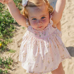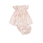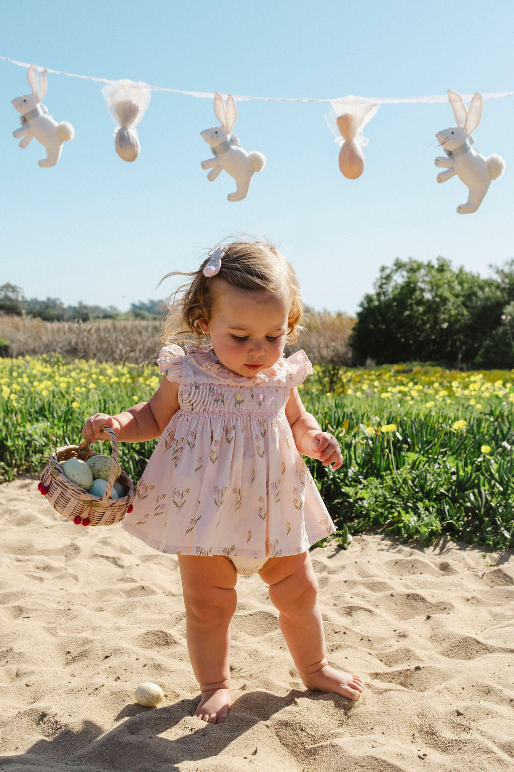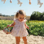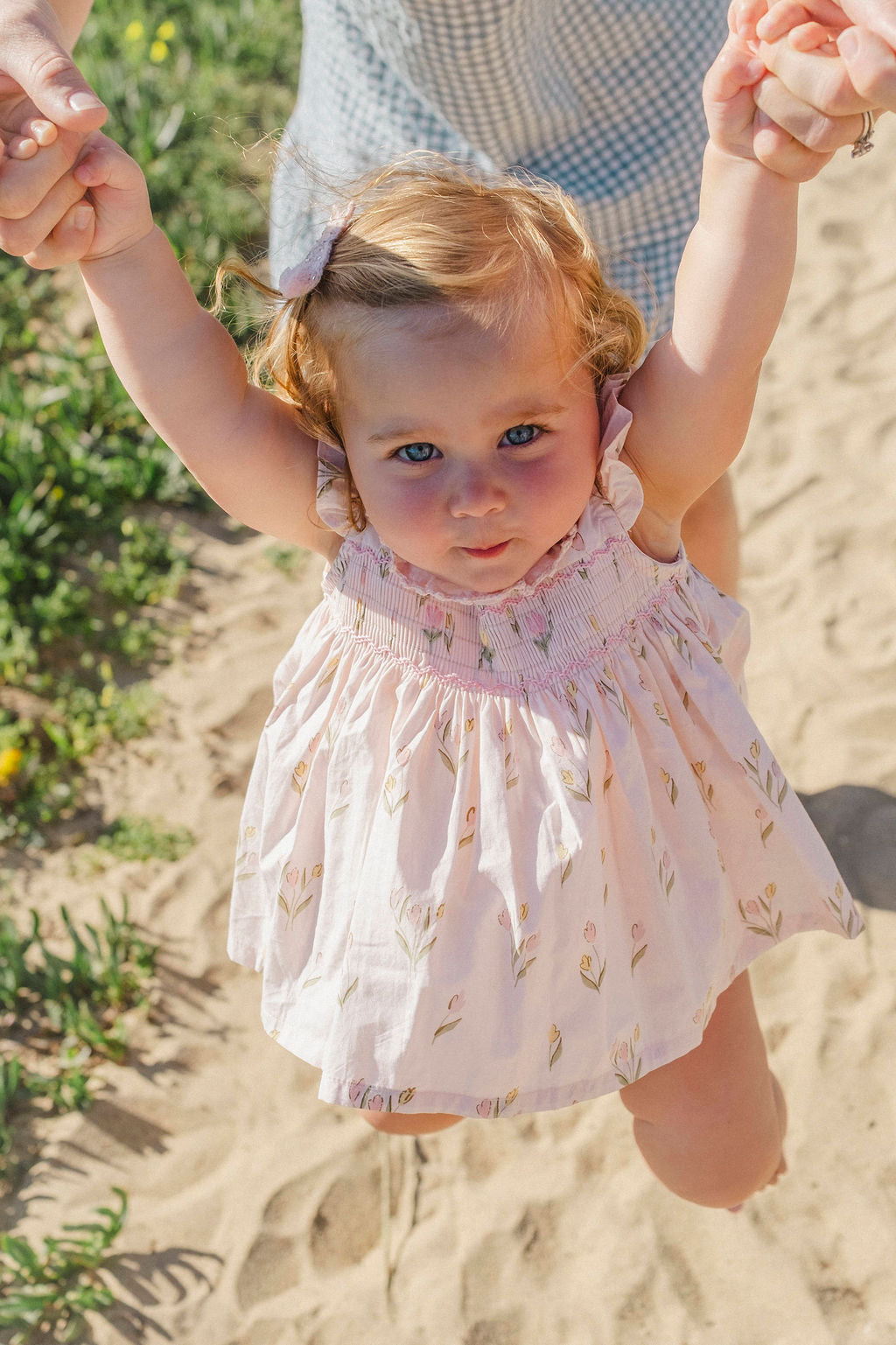 A coordinated set that makes getting dressed feel effortless and special all at once. Our Smock Flutter Set in Dancing Tulips features a hand-drawn floral print that brings a sense of joy and springtime to every wear. The classic smocked top offers a comfortable, flexible fit with sweet flutter sleeves that add a delicate, feminine touch. Paired with matching bloomer shorts, this set is perfect for warm days spent playing, exploring, and making memories. Crafted in soft, airy cotton gauze, both pieces feel light and breathable against the skin, offering all-day comfort without sacrificing style. The charming tulip print, drawn in-house with love, adds a timeless quality that photographs beautifully and pairs effortlessly with so many pieces in your little one's wardrobe. Made slowly and with care in Peru, this is a set you'll reach for again and again.