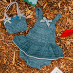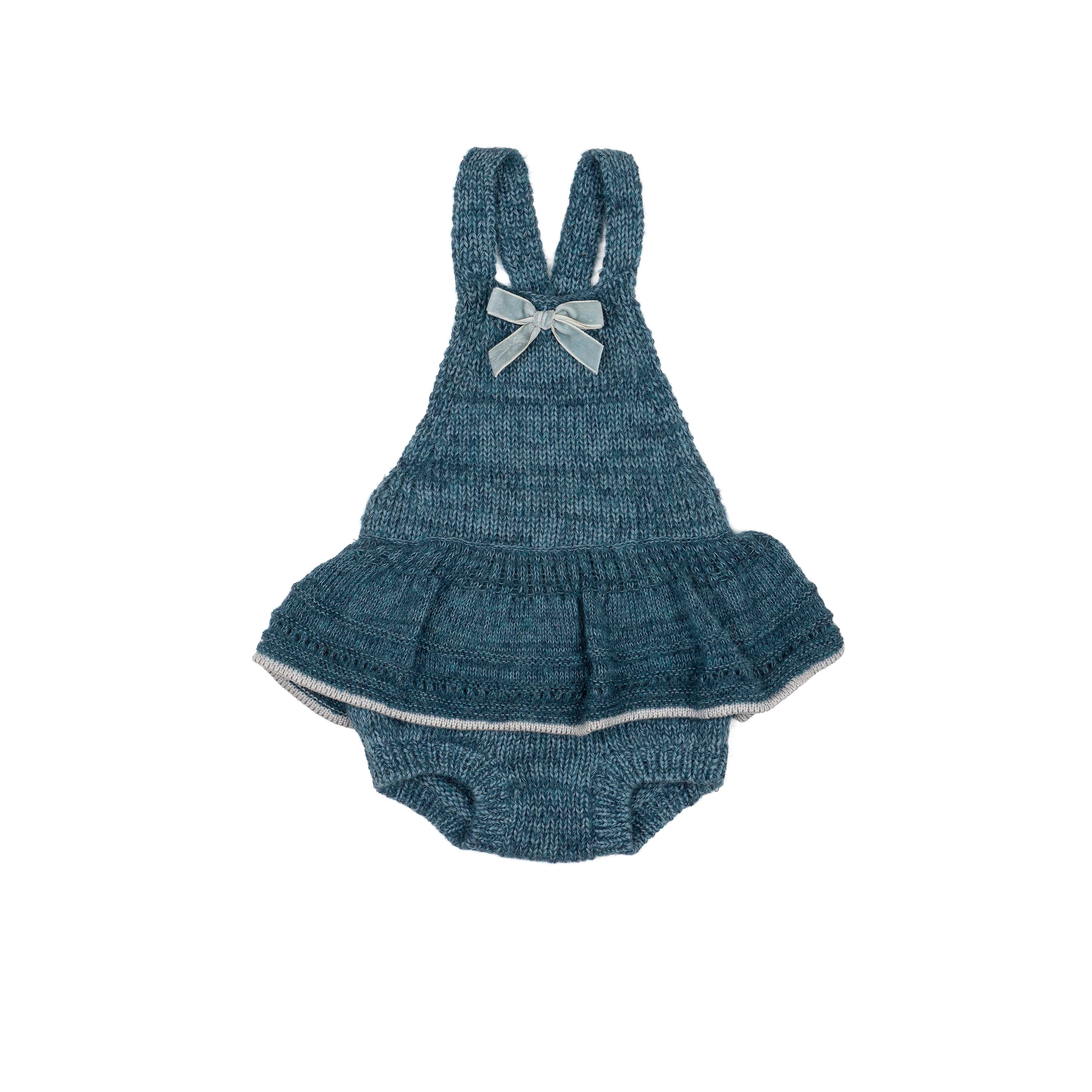 Cozy meets celebration ✨ Our hand-knit romper in rich aegean blue features a gem-like hue and luxurious velvet bow accents—where heritage craftsmanship meets holiday magic.